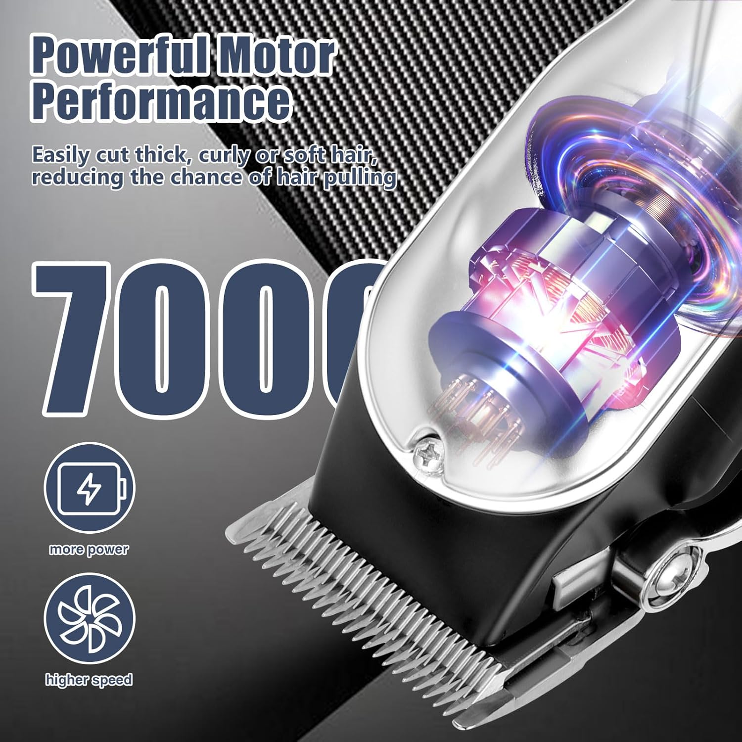 Krachtige motorprestaties: deze tondeuse voor heren is uitgerust met een krachtige motor van 6500 tpm en duurzame stalen koolstofmessen die duurzamer, sneller en scherper zijn dan traditionele messen om dik, krullend of zacht haar met gemak te knippen. Dit vermindert het risico op het trekken van het haar, wat resulteert in een snellere, gladdere en stillere scheerbeurt.