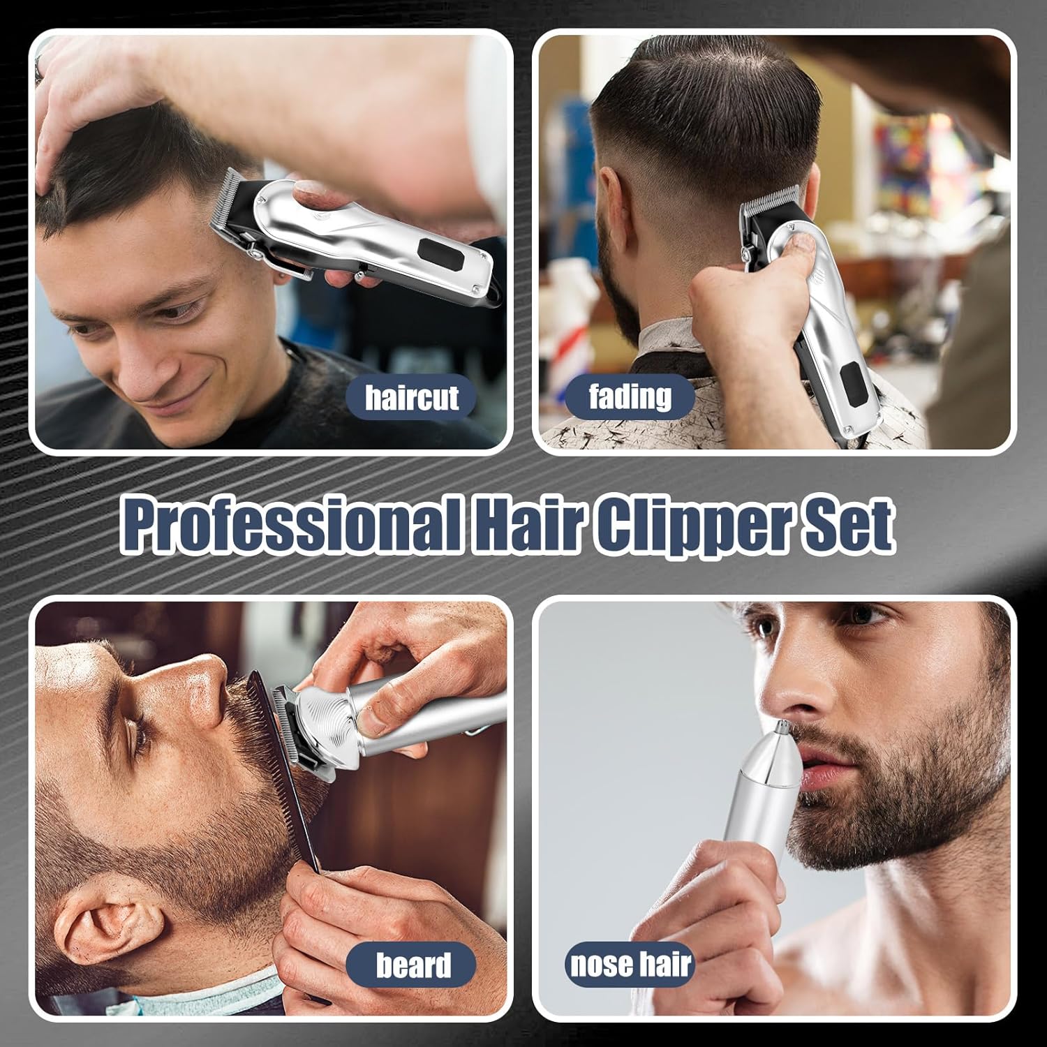 I recently tried this hair clipper set, and it’s been a great investment for grooming at home. The set includes a hair trimmer, beard trimmer, and nose hair trimmer, making it versatile for all my grooming needs.The clippers are easy to use and provide a precise cut, and the adjustable settings allow for different hair lengths. The nose hair trimmer is a handy addition, and the entire set is suitable for both adults and children.If you’re looking for a professional and versatile grooming set, this one is definitely worth it. Highly recommend for men and families.