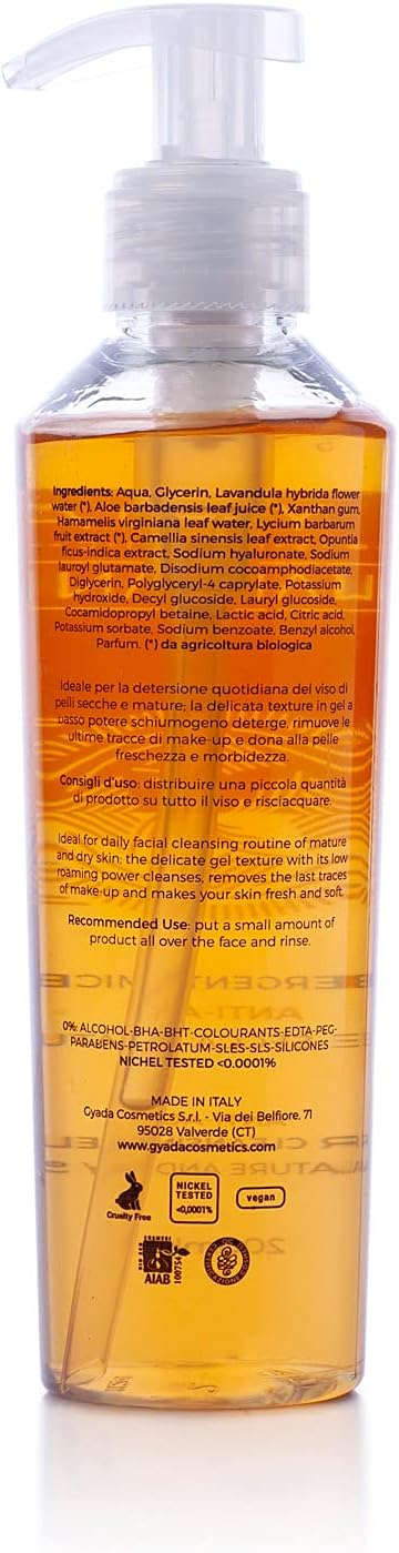 GYADA COSMETICS, Micellaire Anti-aging Cleansing Gel voor het gezicht, geschikt voor droge en rijpe huid, make-up remover voor make-up, niet waterdicht, met aloë vera, 200 ml, 1, 1