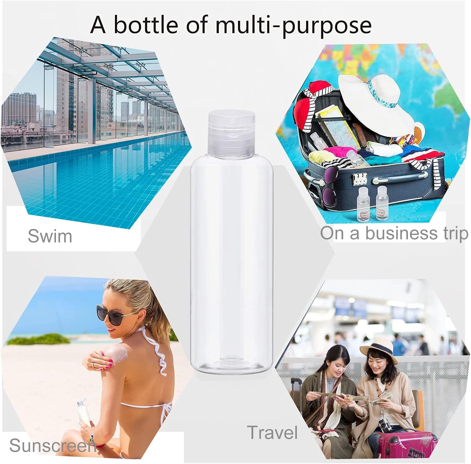 Licht en draagbaar: de plastic flessen hebben elk een inhoud van 100 ml, dus voldoen aan de bepalingen voor handbagage. Zeer klein, gemakkelijk te dragen, kan in rugzakken, tassen, wachtwoorddozen enz. worden verminderd en je reis is eenvoudig. De grootte van deze plastic cosmeticafles is binnen de aanvaardbare grenzen van de luchtvaartmaatschappijen, eenvoudig en comfortabel te dragen.