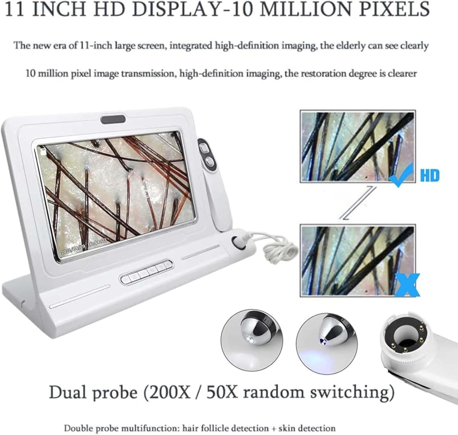 Haarfollikelanalyser: 11-inch hoofdhuiddetector met hoge resolutie met 10 MP camera, 50x + 200x vergroting voor het testen van hoofdhuidolie en haarvocht