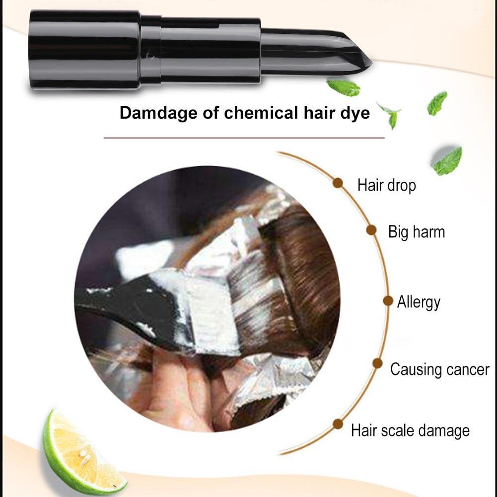 Het hoofdbestanddeel van de haarkleurstift is olijfolie, die de hoofdhuid en het haar niet beschadigt en veilig te gebruiken is. Op wit haar aanbrengen, het kan ertoe leiden dat wit haar snel zijn kleur verandert en de kleur is natuurlijk. Klein formaat, gering gewicht, lippenstiftvorm, gemakkelijk te dragen en indien nodig comfortabel te gebruiken. 3 kleuren zijn beschikbaar, eenvoudig te gebruiken en kunnen met shampoo worden gereinigd. Het is geen permanent of semi-permanent verfgereedschap, het kan slechts gedurende een bepaalde periode zoals lippenstift worden bewaard.