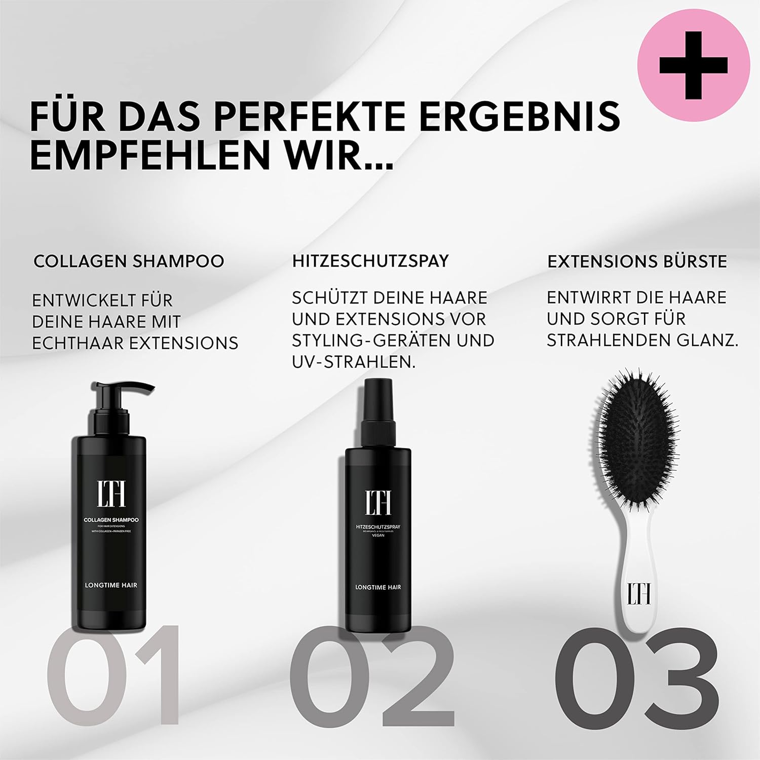 Breng gewoon na het wassen een kleine hoeveelheid op je vochtige haar aan en spoel het na een paar minuten uit. Je haarextensies blijven zacht, glanzend en gezond, met een subtiele en aangename geur.