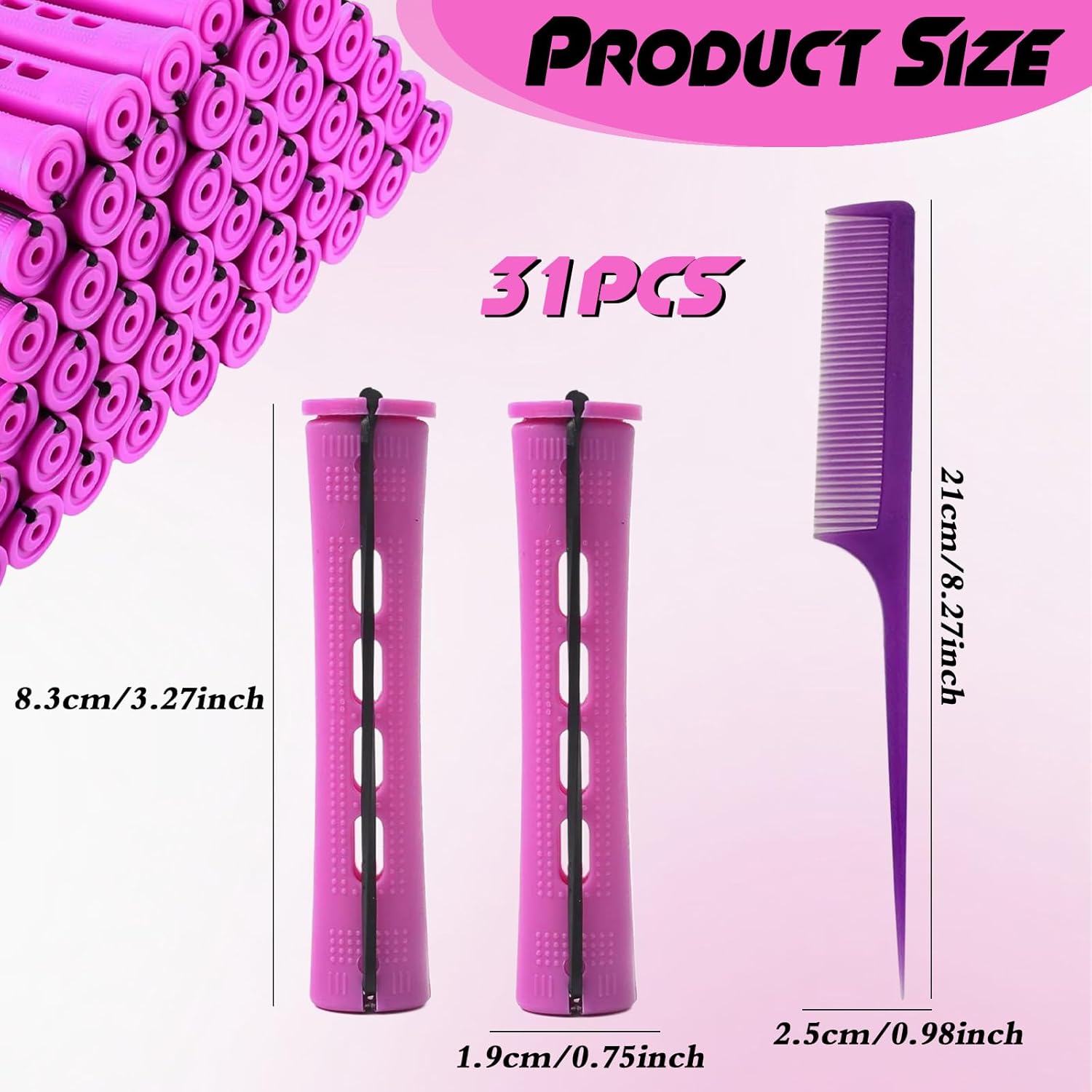 Complete Haarrollerset: U ontvangt 30 paarse haarrollers en een paarse kam. Een complete set voor het cre毛ren van prachtige, schadevrije krullen.