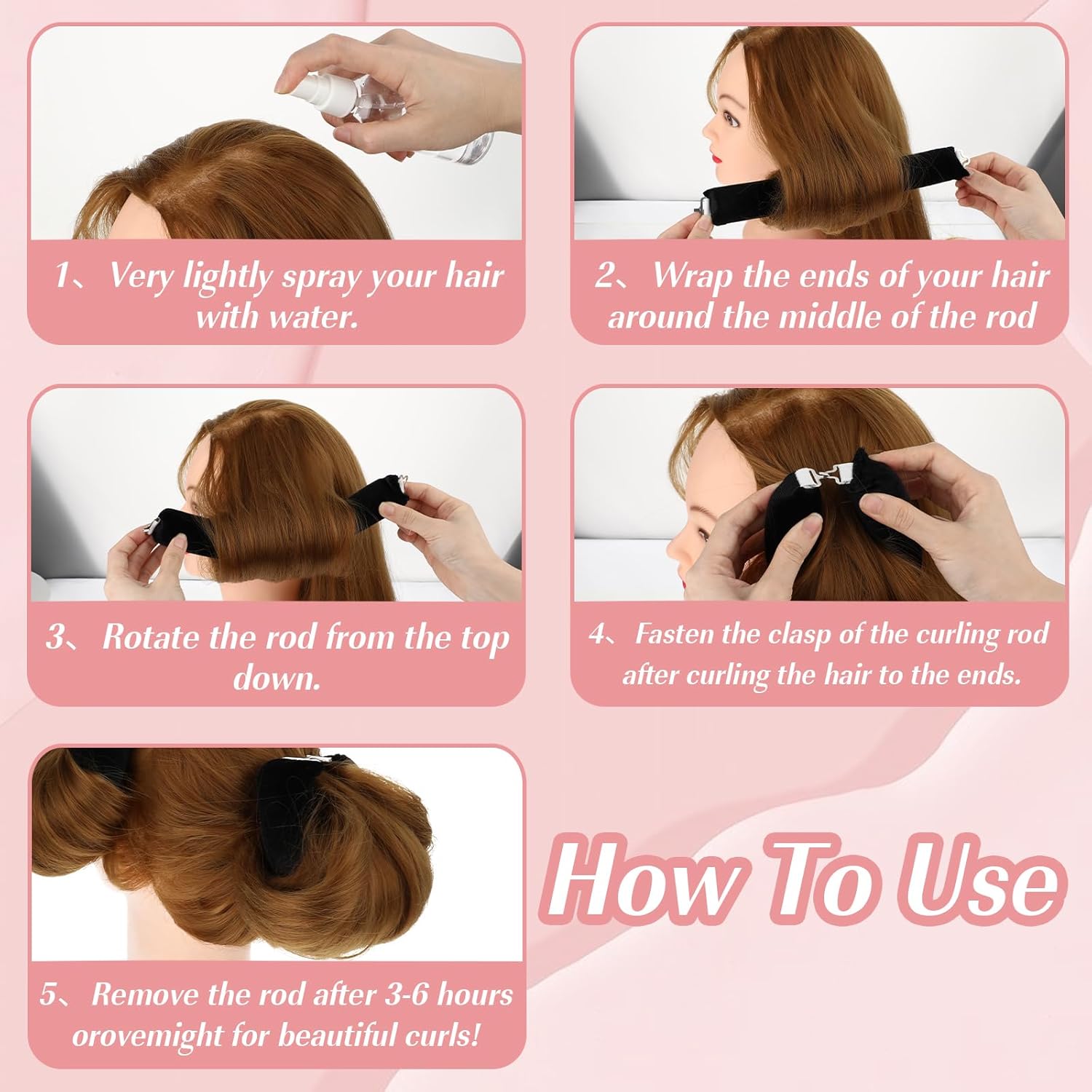 Voor alle haartypes: deze hittevrije krulspelden bestaan uit parelkatoen en rubber met gladde satijnen afwerking. De krultang kan voor alle haartypes worden gebruikt, of je nu droog of nat haar, lang of kort haar hebt, zodat iedereen van adembenemende haren kan genieten van moeiteloos krullen.