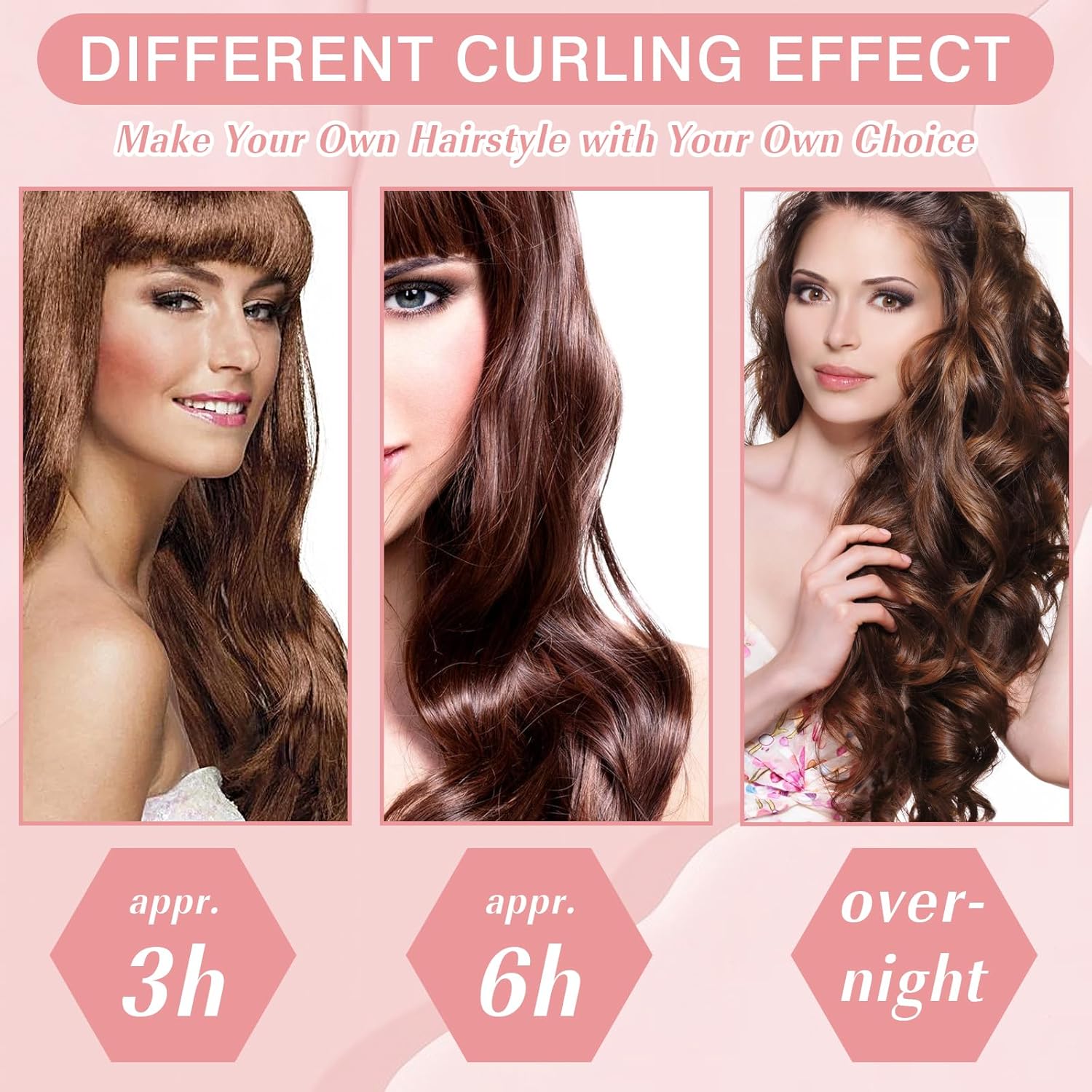 Eenvoudig te bedienen: slechts een paar stappen om mooie krullen te krijgen. Wikkel je haar om de krultang zonder warmte. Laat je haar dan aan de lucht drogen of breng de hittevrije schuimkrulspelden ‘s nachts aan en word ‘s ochtends wakker met prachtige krullen.