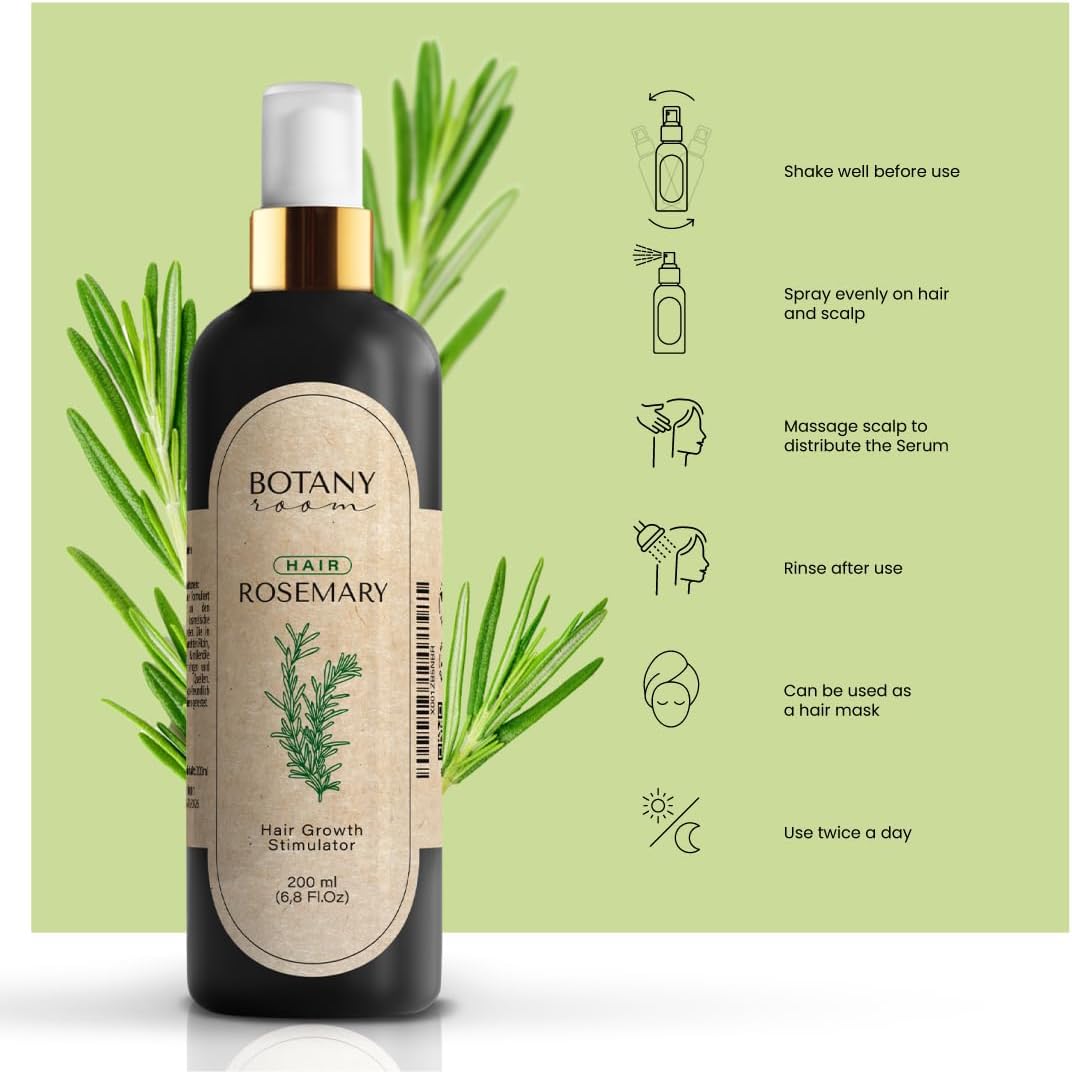 Haarspray van BotanyRoom® Hair Rosemary, 200 ml – bereik prachtig gestyled en verzorgd haar met de kracht van rozemarijn, vitamine C, ricinusolie en kamille-olie voor gerevitaliseerd haar.