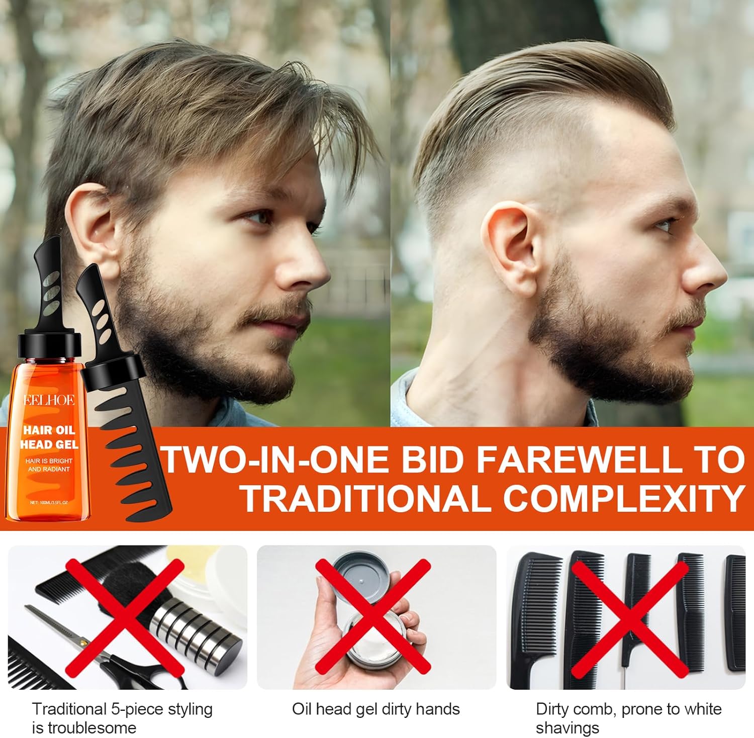 – Bevat 260 ml haarstyling-gel en een olieachtige haarkam die je modieus en casual maakt.