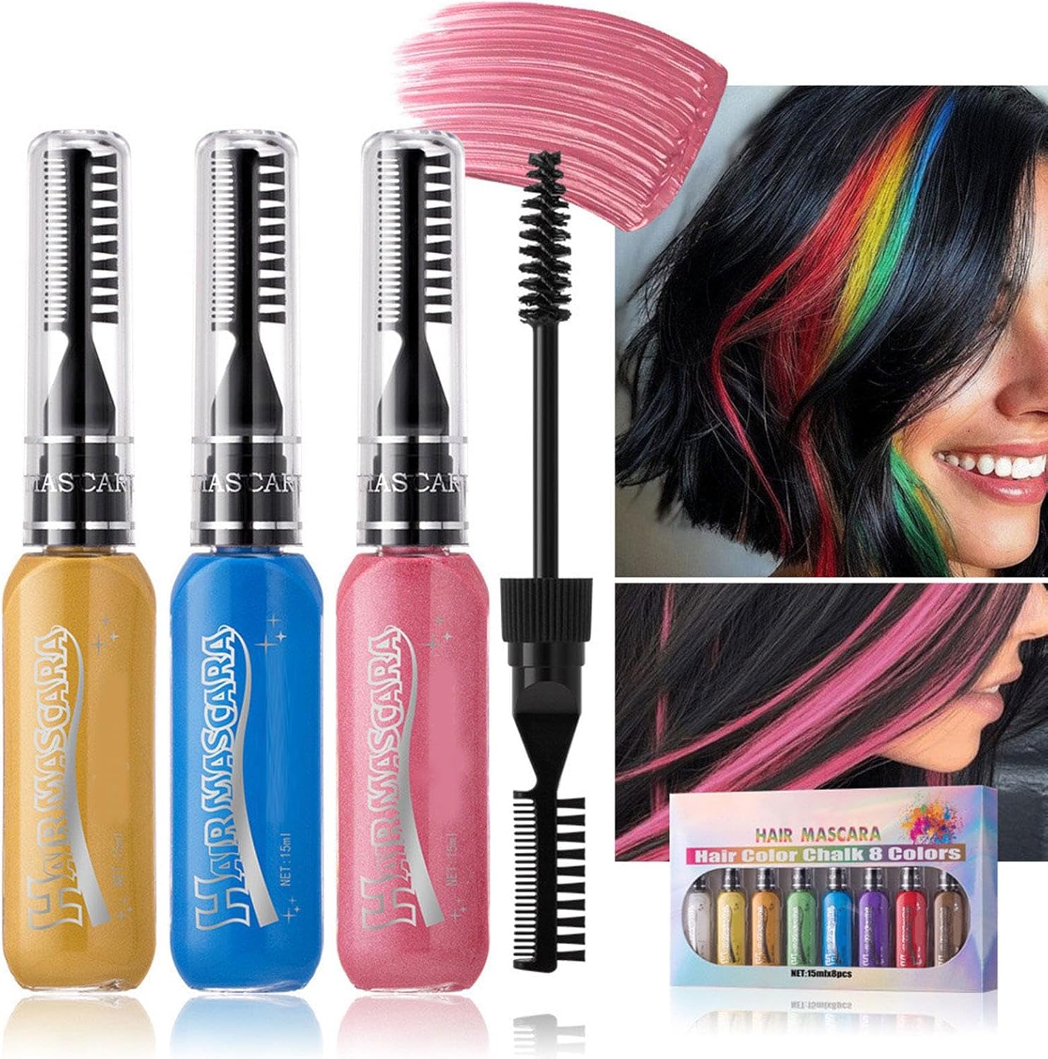 8 Vibrant Washable Colors: This hair chalk set features 8 bright and bold colors, allowing you to create endless styles and experiment with vibrant looks. Each color is easily washable, making it a fun and safe option for temporary hair coloring