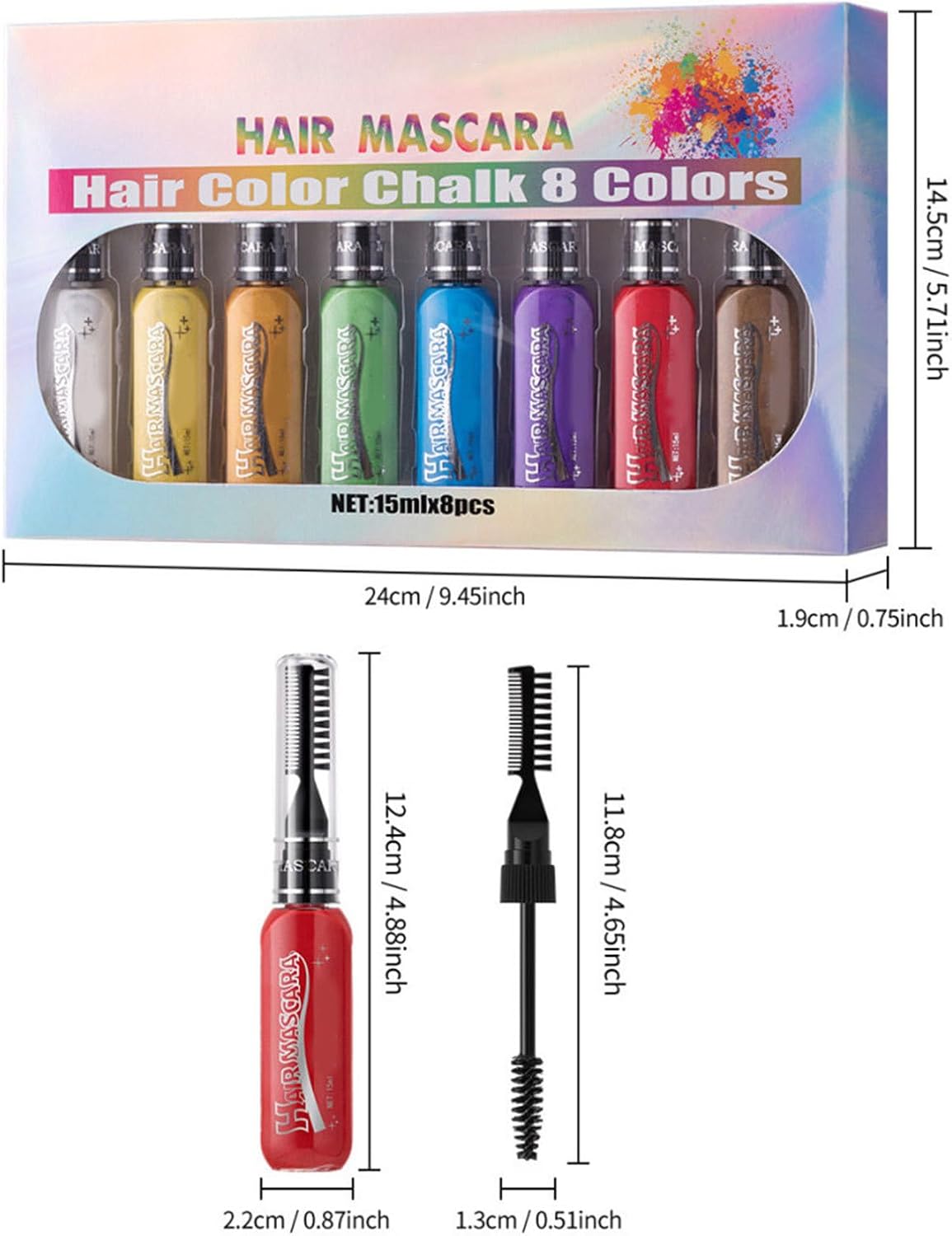 Hair Chalk Comb, Mascara Set, Washable Temporary Chalks, 8 Color Hair Dye Pile for Highlights, Vibrant Styling Accessories for Adults and Children, 9.45×5.71×0.75 Inches
