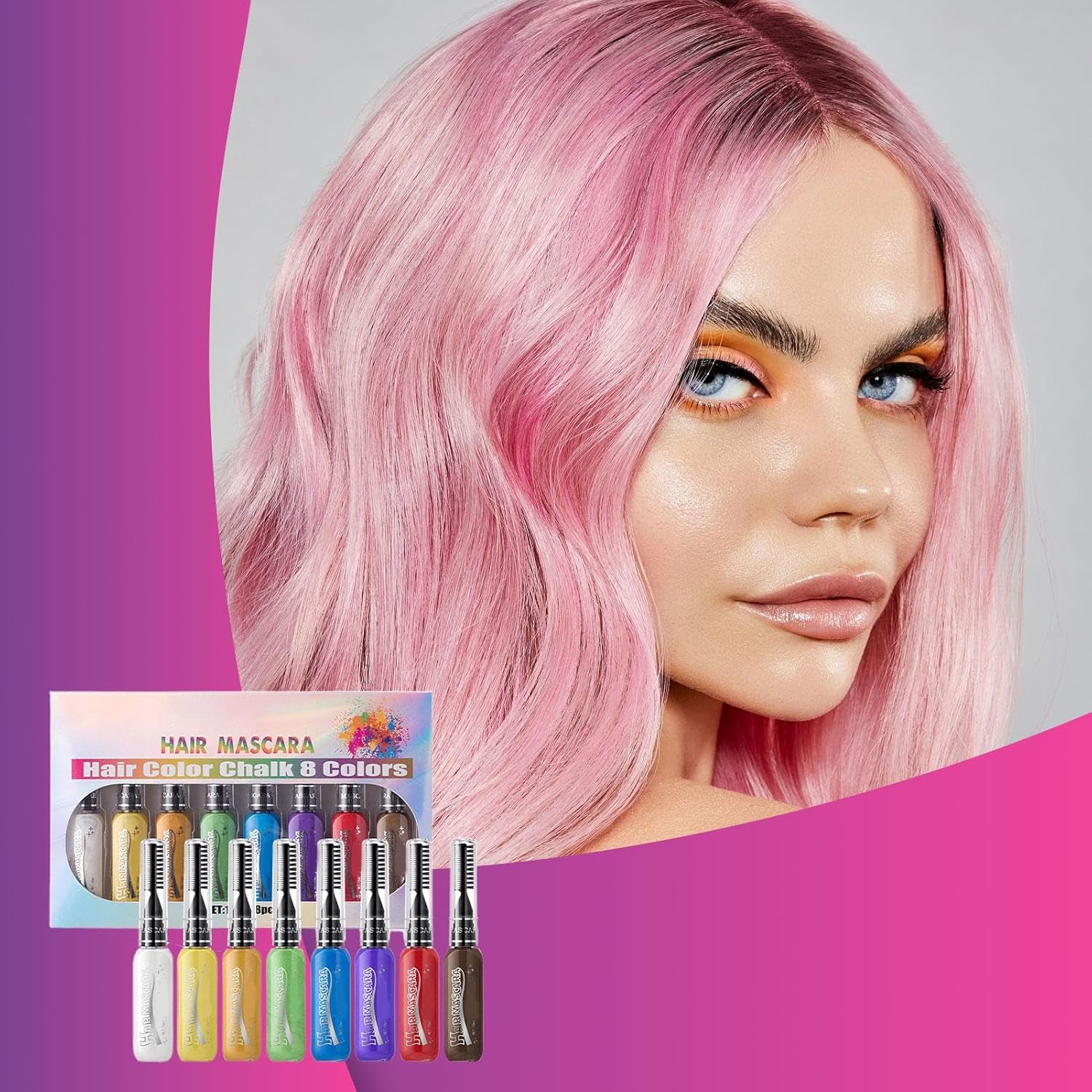 Hair Chalk – Mascara Hair Color Temporary | 8 Colors Temporary Hair Dye Set for Girls, Holiday Cosplay Hair Highlighting Mascara