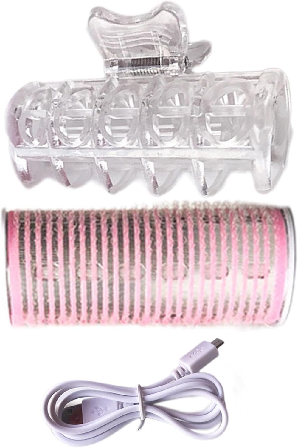 1. Connect the USB cable; (computer port, car USB port, phone charging head, powers bank with output current of 1.8A or can charge normally). The charging time takes about 3-5 minutes (here the charging is charged with the charging head. If it is directly charged by USB, it will take about 6 minutes to charge, but the light will also be on. This does not matter. It just means that it is not completely charged, but the temperature has been constant). If it is completelycharged, the light will automatically turn off. Then take an appropriate amount of hair, use the curler to curl from the end of the hair to the favorite height, and take out the curler after the curler cools down to create Korean air bangs.