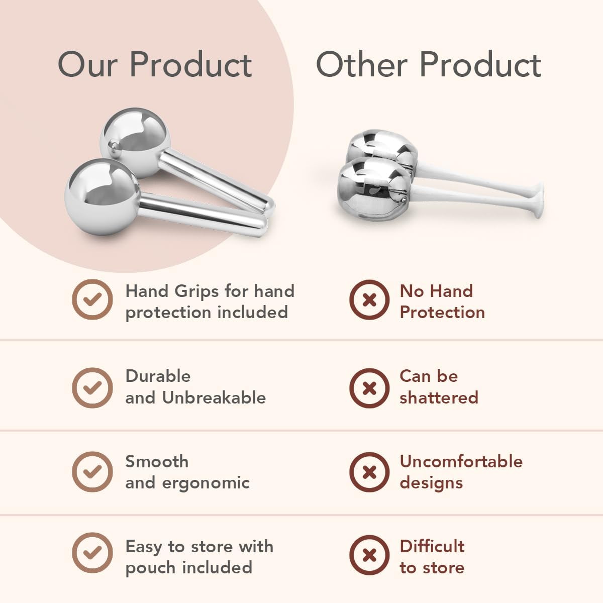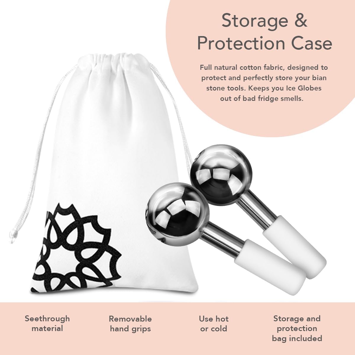 Geniet van warme en koude massage; deze set bevat ook beschermende handgrepen. Deze handgrepen houden je hand en vingers veilig terwijl je je gezicht, nek en rond je ogen masseert.