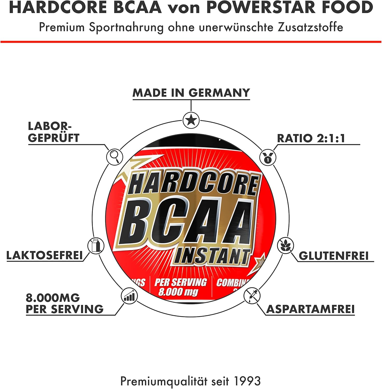 HarDCORE BCAA | 500 g | hoogste dosering met 8.000 mg BCAA per 10 g poeder | 2:1:1 leucine isoleucine valine | met vitamine B6 en B2 | veganistisch | voor training, spieropbouw en dieet | Duitse