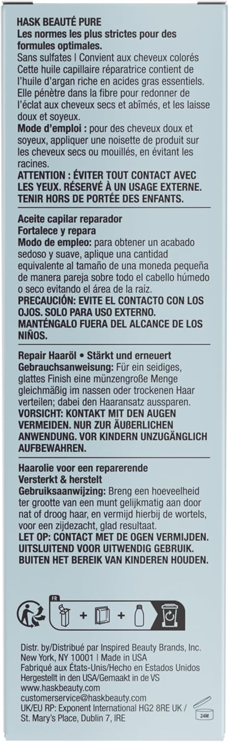 I just had to share how much I adore the HASK Argan Repairing Shine Oil! Honestly, it’s been a game changer for my hair. The first time I used it, I was really impressed with how it made my hair feel—super soft and sleek.What I love most, though, is the scent. It’s absolutely beautiful! Every time I run my fingers through my hair, I get a lovely whiff of that gorgeous fragrance. It’s like a little pampering session every day.I’ve noticed that my hair not only looks shinier but also feels healthier. I can easily style it without the frizz that used to drive me crazy. Plus, the price is just fantastic for what you get. I’ve tried other oils that were much more expensive and didn’t deliver nearly as well as this one does.If you’re on the fence about trying it, go for it! My hair has never looked better!