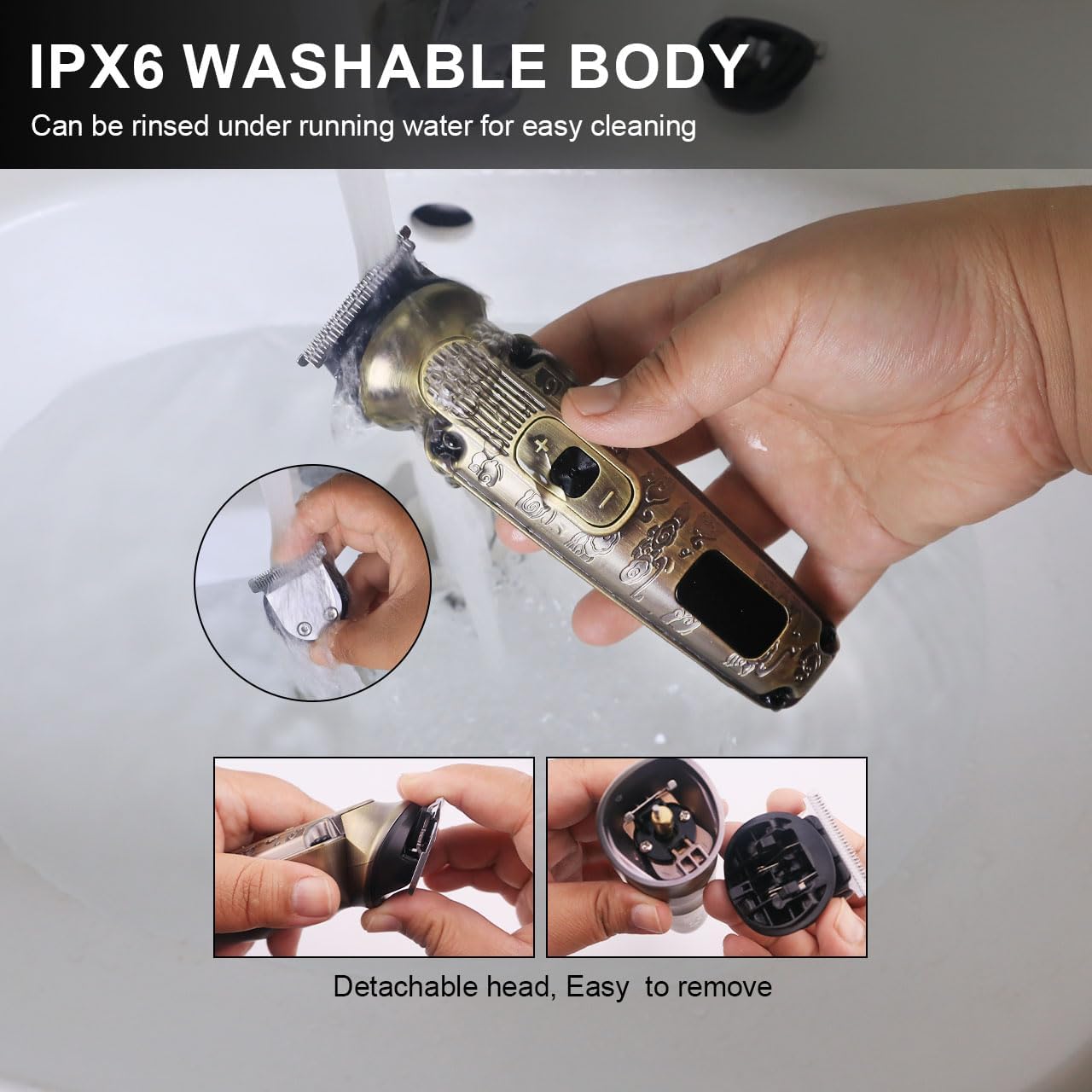De gehele behuizing van de baardtrimmer is IPX6 wasbaar en de verwijderbare snijkoppen kunnen eenvoudig onder stromend water worden gereinigd. Bij langdurig gebruik moet je het apparaat na het schoonmaken laten drogen. Opbergtas en opbergvoet worden meegeleverd, je kunt de opbergmethode kiezen op basis van je voorkeur om verlies of verwarring te voorkomen en je baardtrimmerset netter en georganiseerder te maken.