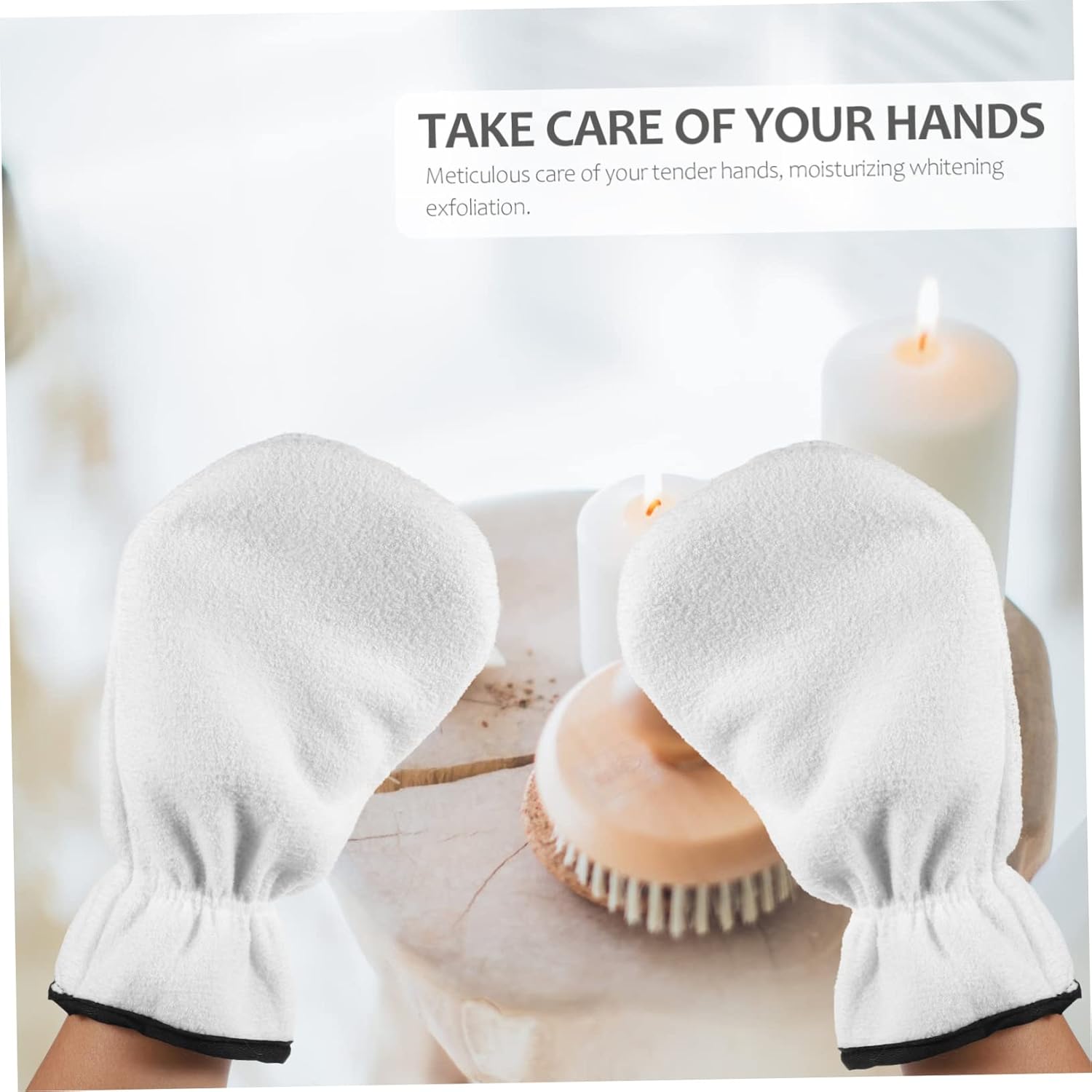 Exfoliating gloves: before bedtime, you can apply a moisturizer or cream, put on the gloves, and you will be pleasantly surprised if you find your rejuvenated and embellished hands and feet when you wake up.