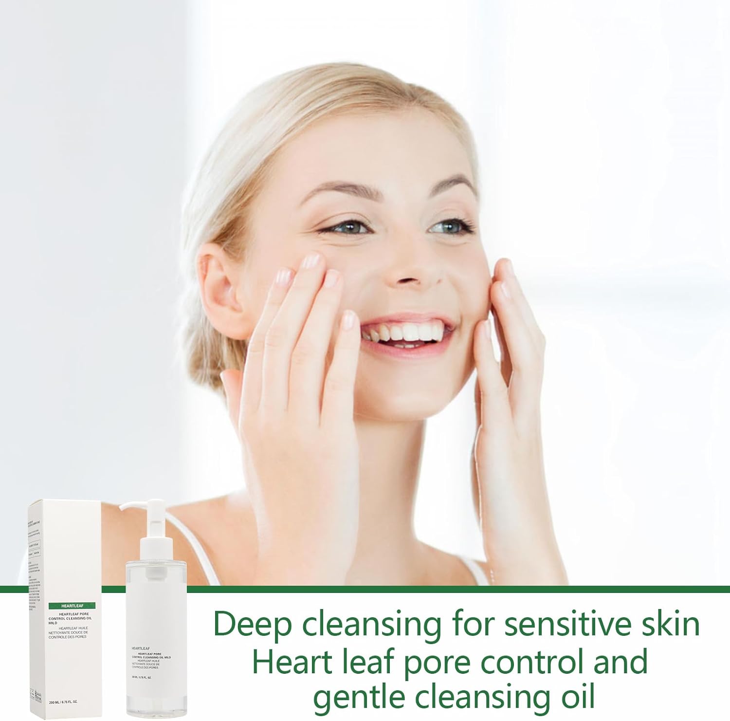 Heartleaf Poriëncontrole-olie, Heartleaf Pore Control Cleansing Oil, Gezichtsreiniger voor de gevoelige huid, mee-eters verwijdering, make-up remover, dieptereiniging, gezichtsreiniger (200 ml)