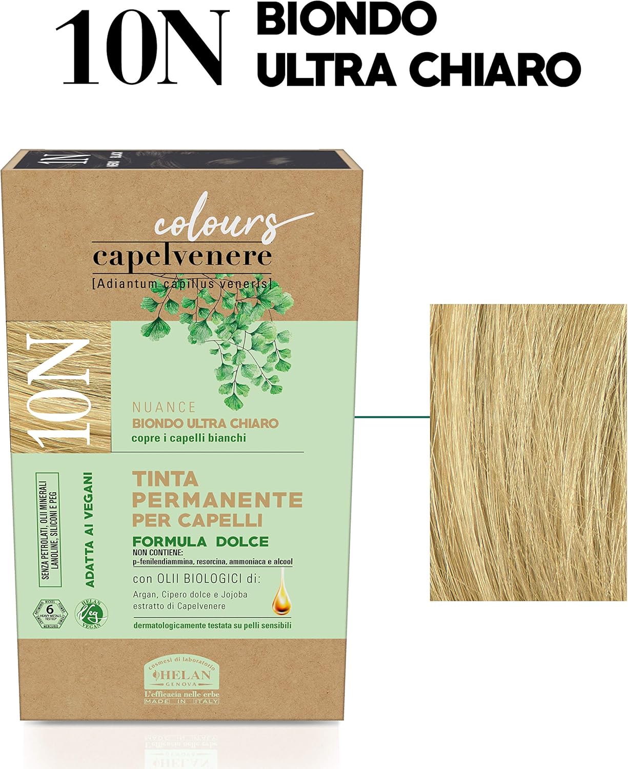 Helan, Capelvenere Colours, Natural Permanent Hair Color, Soft Formula 10N Ultralight Blonde, Easy and Odourless Hair Colour Set with Excellent Coverage, Ammonia and Alcohol-free Hair Colour