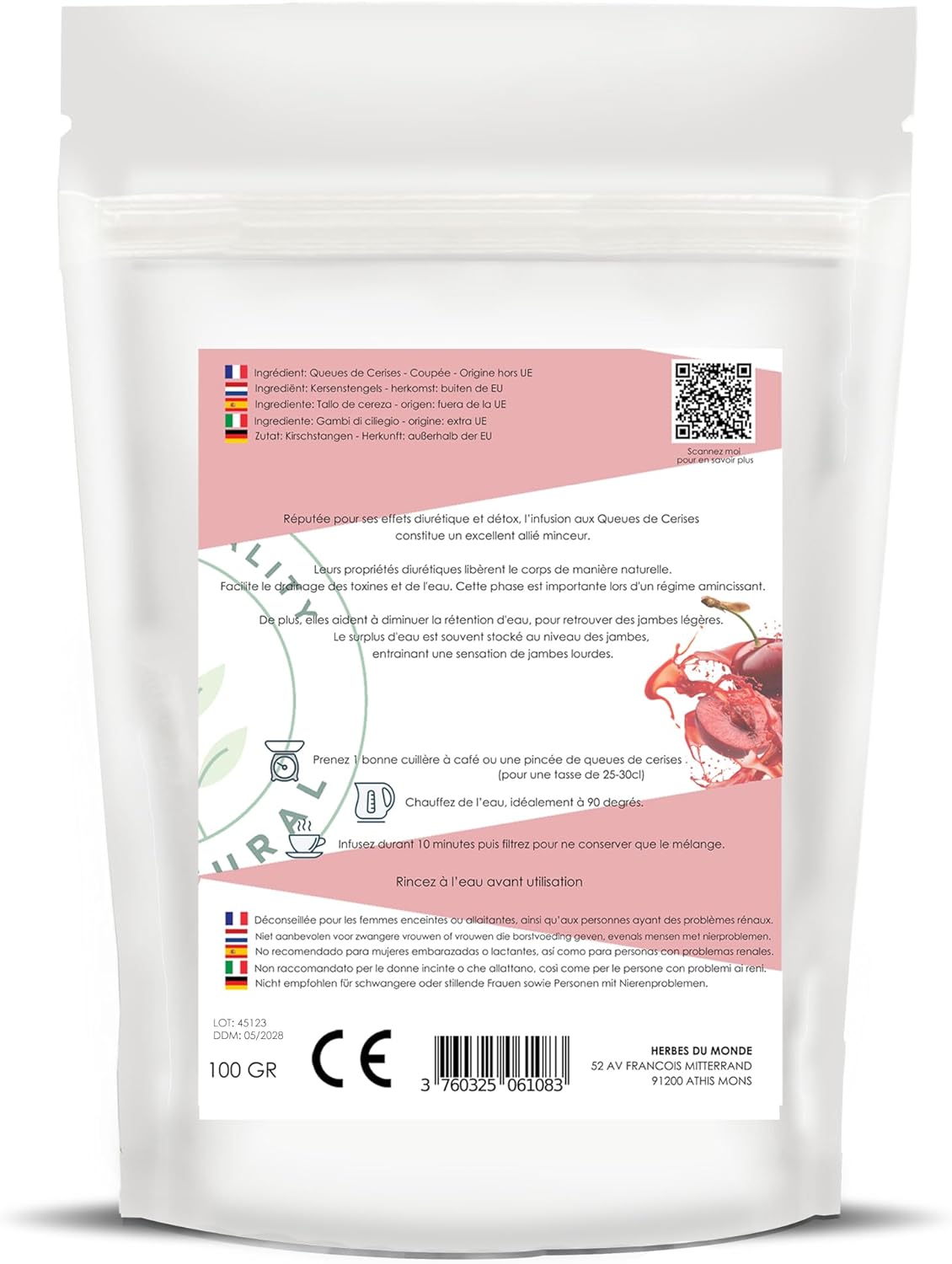 queues de cerises achetées pour infusion drainantes. testées depuis deux jours. le goût est ok. pour l’effet drainant, je pense qu’il faut attendre un peu.