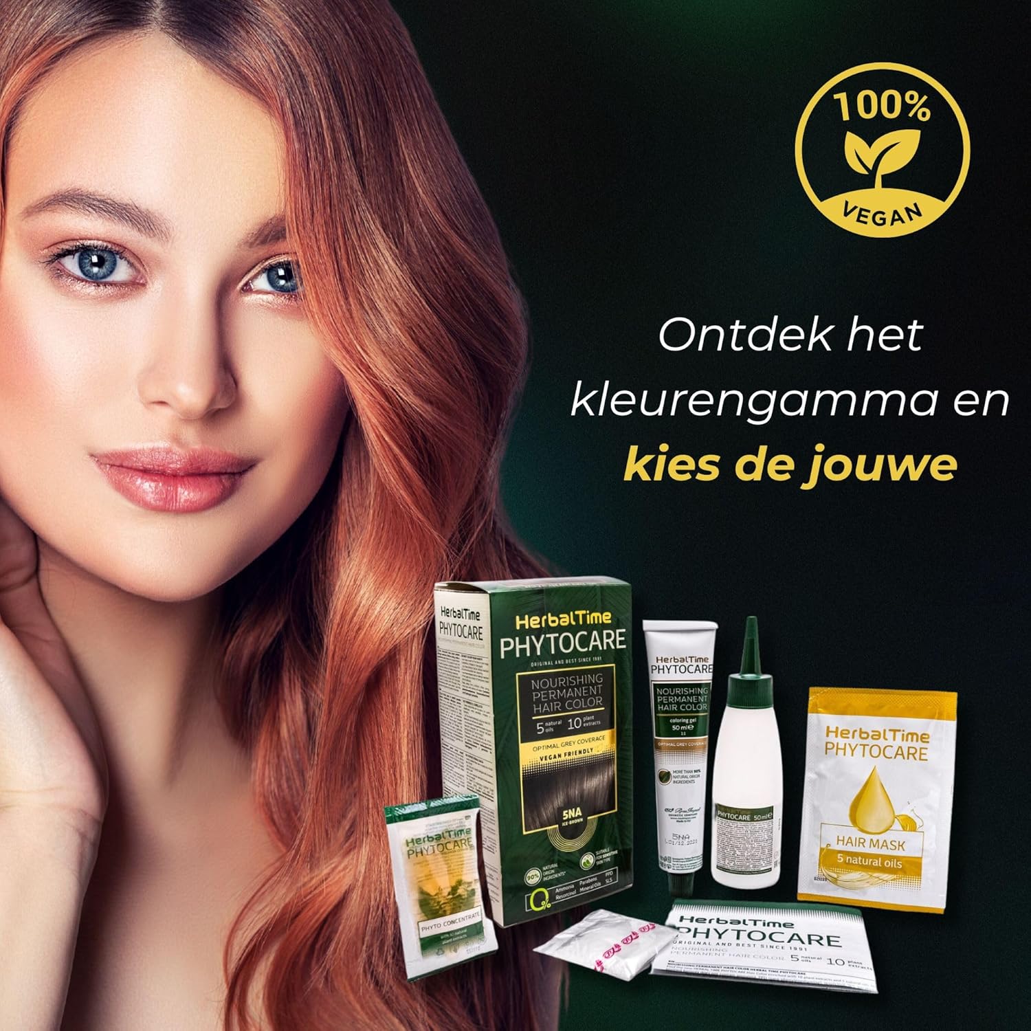 Herbal Time Phytocare Permanente Haarkleuring | Zonder Ammoniak, Zonder Parabenen | Natuurlijke Professionele Haarverf | Haarverf Kit | Voed en Bescherm je Haar | Kleur Donker Chocolade 3N