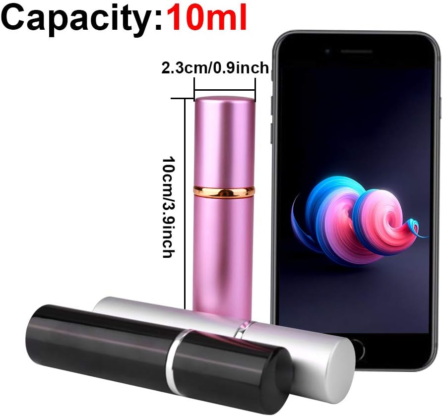 Hervulbare reisparfumverstuiverflessen, 3 stuks 6 ml mini draagbare spuitflessen navulbare parfum aftershave verstuiver lege reisflessen met trechter.., 10ml (zwart+zilver+roze), 10ml