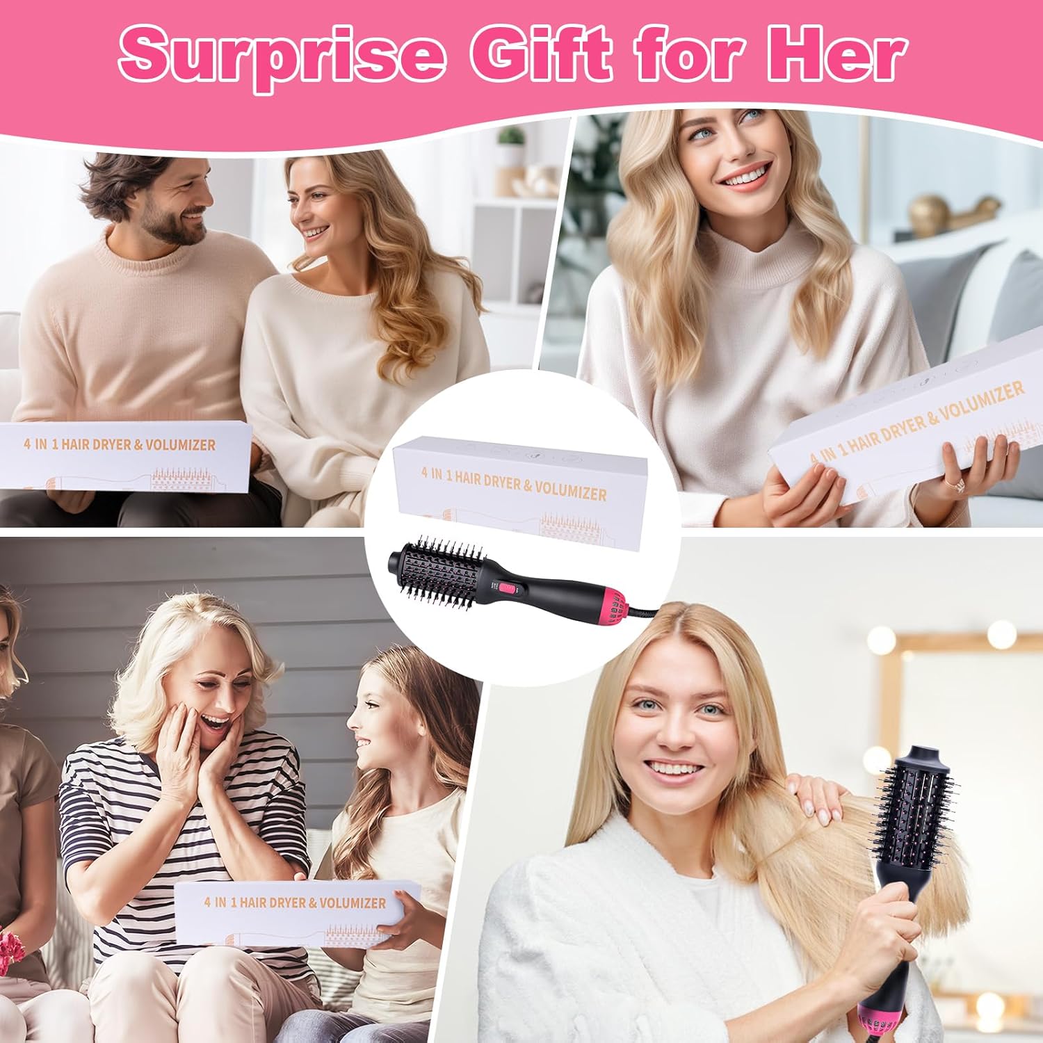 Zachte haarverzorging, geweldig cadeau: De haardrogerborstel biedt een moderne manier om haar te drogen, te stijlen en te krullen. Geschikt voor gezinsgebruik en alle kapsels. Deze warmeluchtborstel zal een goede hulp zijn bij je ochtendkapsel. Een uniek cadeau voor meisjes, vriendinnen, echtgenotes, moeders, dochters, Valentijnsdag, Moederdag, Thanksgiving, Kerstmis, verjaardagen, enzovoort.