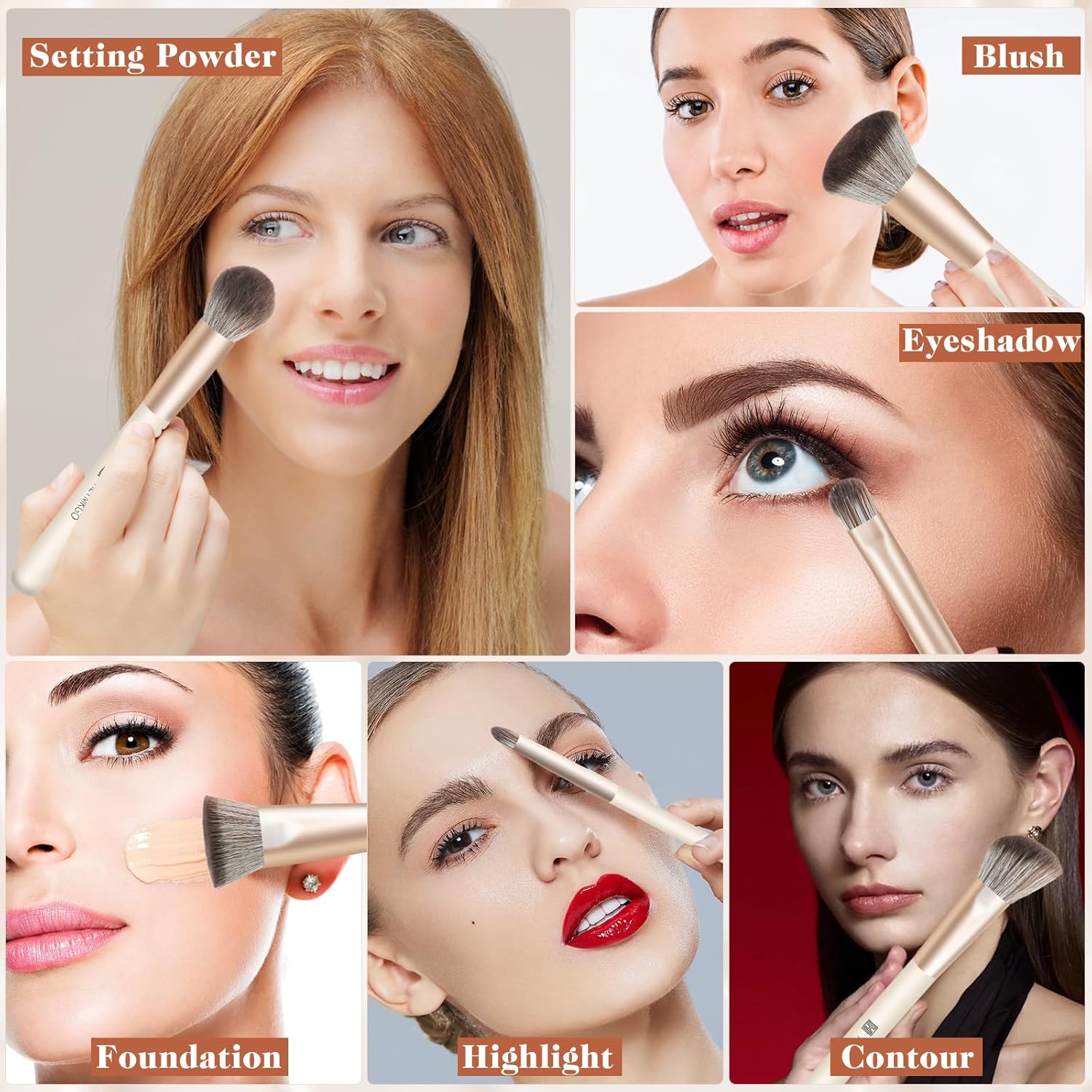 HEYMKGO Make-upborstelset professionele premium synthetische foundation poeder blush blending gezichtsborstel oogschaduw eyeliner make-up borstel kit 22 stuks + 4 make-up soesjes + schone spons +