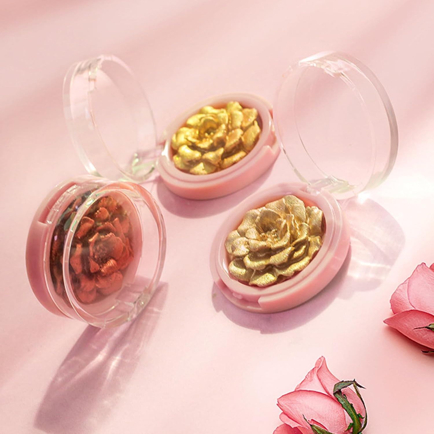 【3D-rozendesign】Deze highlighter heeft een 3D-design dat een stereoscopische rozenvorm geeft. Het gebruikt ook een poeder met glanseffect, dat een ander soort metallic glans geeft. Na het aanbrengen van het geperste poeder heb je een glinsterende look en goed gedefinieerde gelaatstrekken.