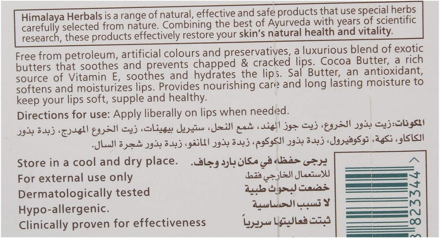Himalaya Herbals Intensieve hydraterende lippenbalsem met cacaoboter/intensieve hydraterende lippenbalsem met cacaoboter, 4,5 g