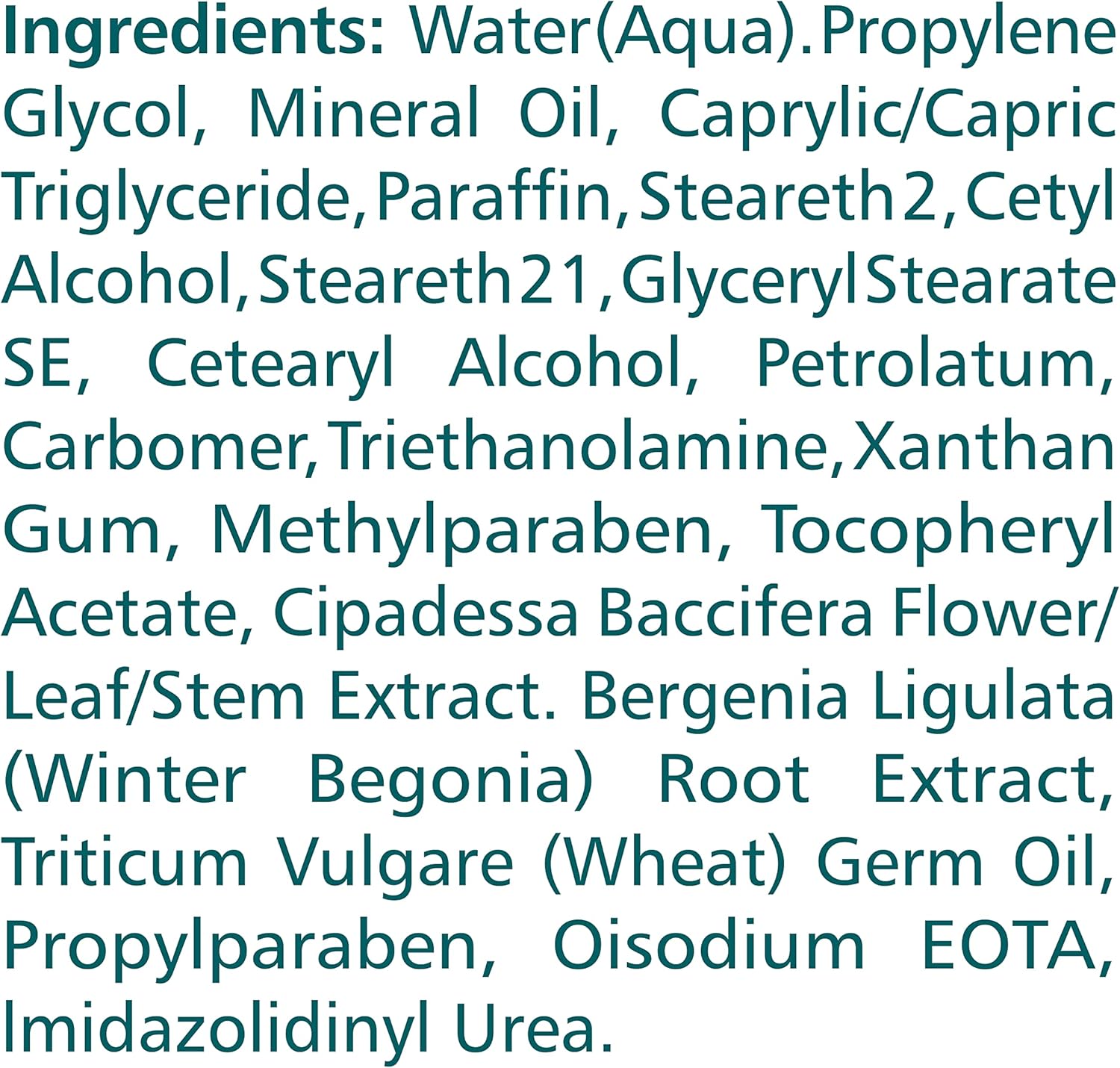 Bergenia Liguata en Triticum Vulgare (tarwekiemolie) dragen bij aan het behoud van een voldoende vochtigheid van de huid, voorkomen tegelijkertijd de vorming van rimpels en beschermen tegen uv-straling