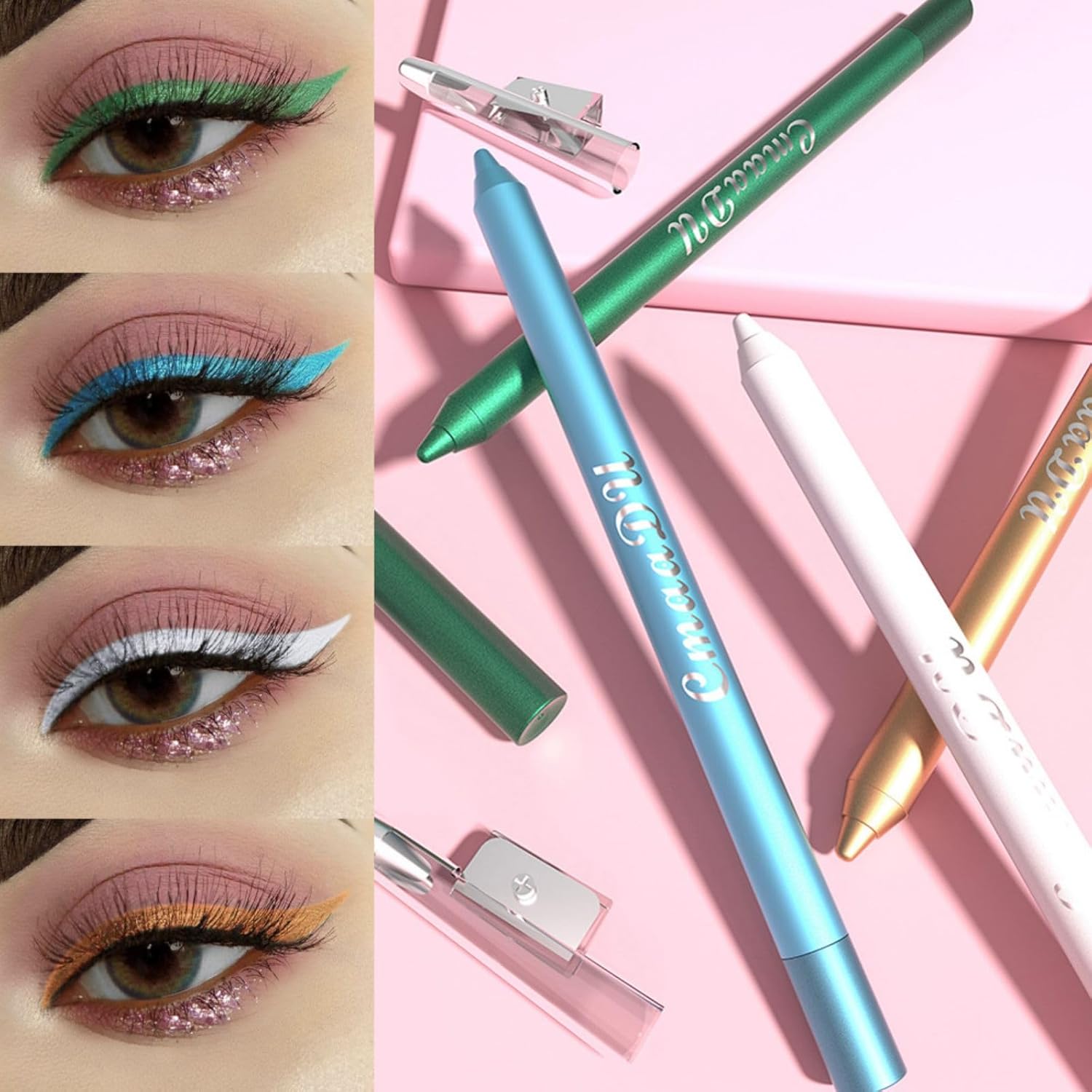 Holzsammlung 12 Kleurrijke Eyeliner Pen Set, Oogschaduw Potlood, Parel Eyeliner Kit Metallic Eyeliner Potlood Glitter Eyeliner voor Vrouwen Eye&Lip Liner