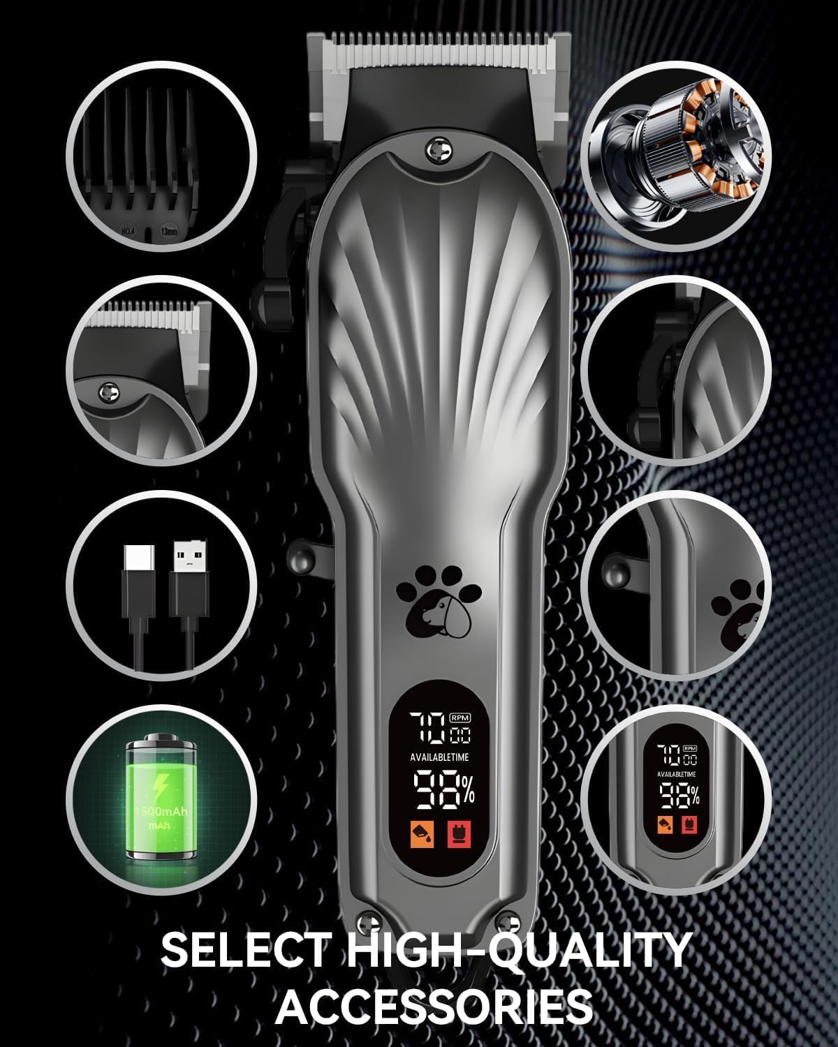 Hondentondeuse Professionele voor Dik Haar, Huisdier Clippers voor Honden Draadloze LED Display Geluidsarme Oplaadbare Hond Trimmer met Grooming Nail Kits