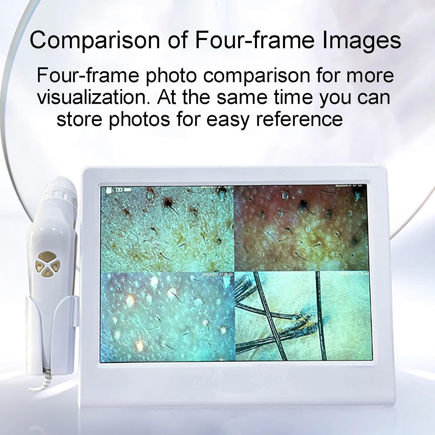 Huiddiagnose Haaranalysator, Hoofdhuidhaarfollikeldetector, Hoofdhuidhaarfollikelanalyseapparaat met 50x/200x Dubbele Koppen, Vier Rasters Gesplitst Scherm, Eenvoudig en Gemakkelijk te Gebruiken