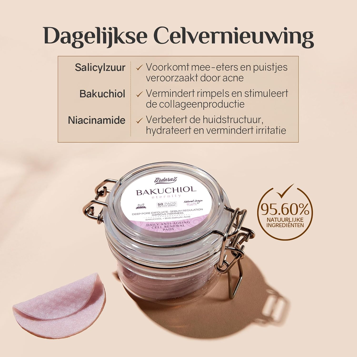 VERSTERKTE FORMULE: We versterken de werking van Bakuchiol door onze formules te verrijken met Niacinamide, een antioxidant die onzuiverheden vermindert en poriën verkleint; Hyaluronzuur en Olijfolie die de huid hydrateren.