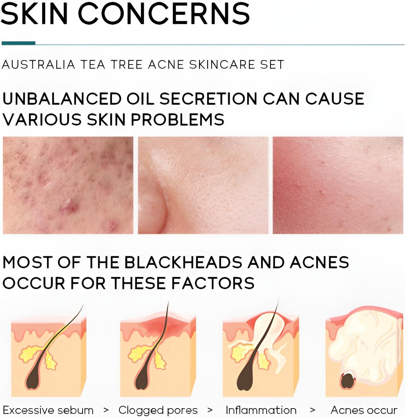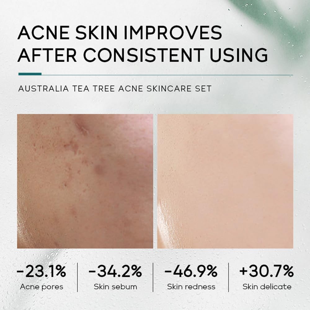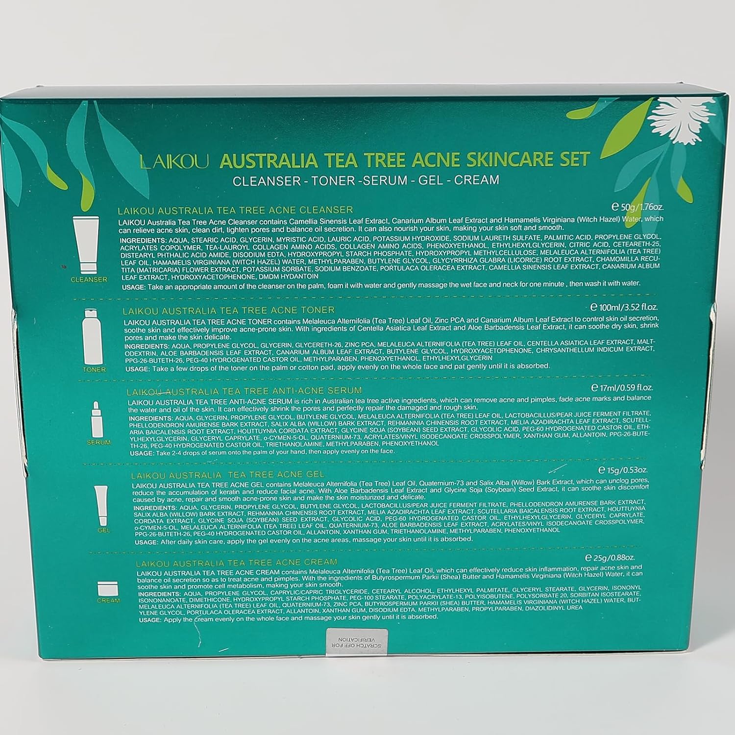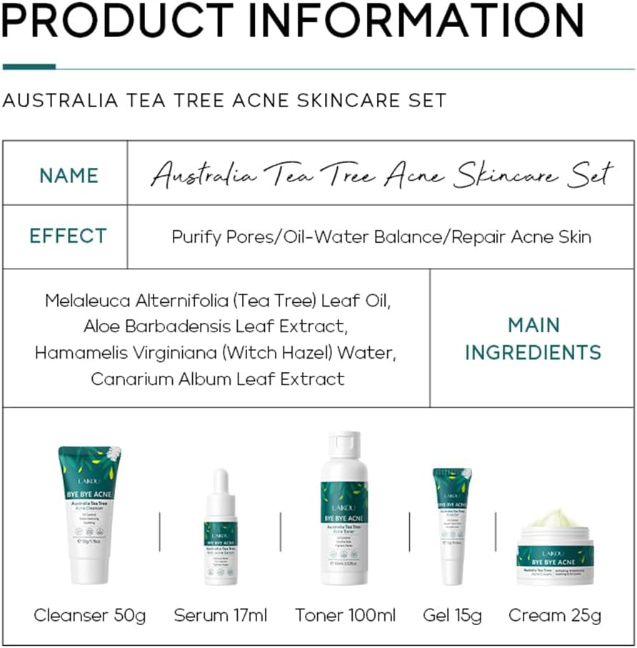 Huidverzorgingsset, 5 Stuks Tea Tree Skin Set, Huidverzorgingsproducten Kit met Reinigingsmiddel, Toner, Gezichtsserum, Oogcrème, Gezichtscrème