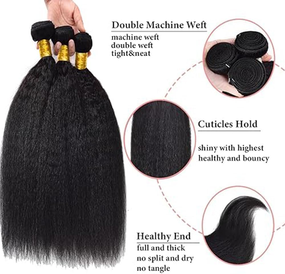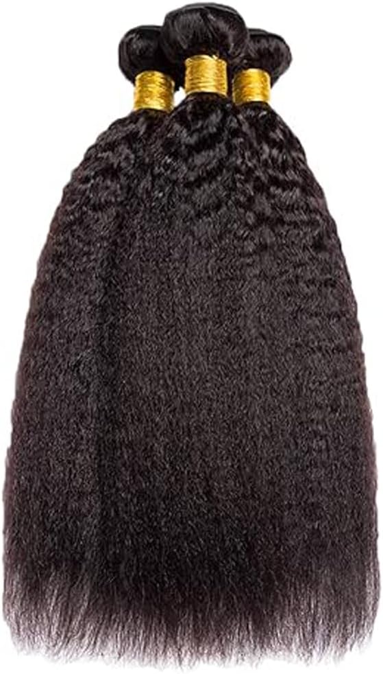 Hxxcoup Bundles Human Hair Bundles Kinky Straight Real Hair Natural Black Double Weft 100g/pc 300g Total 100% Unprocessed Brazilian Remy Hair 3 Bundles No Smell for Woman 12 14 16 Inch