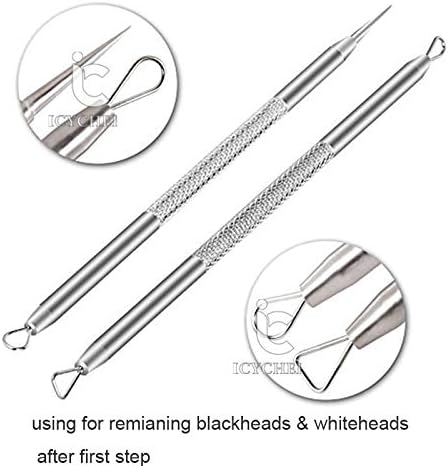 ICYCHEER Comedone Extractor Tools Blackhead Remover Puistje Acne Extractor Tool Removal Kit Gebogen pincetten Kit met metalen behuizing