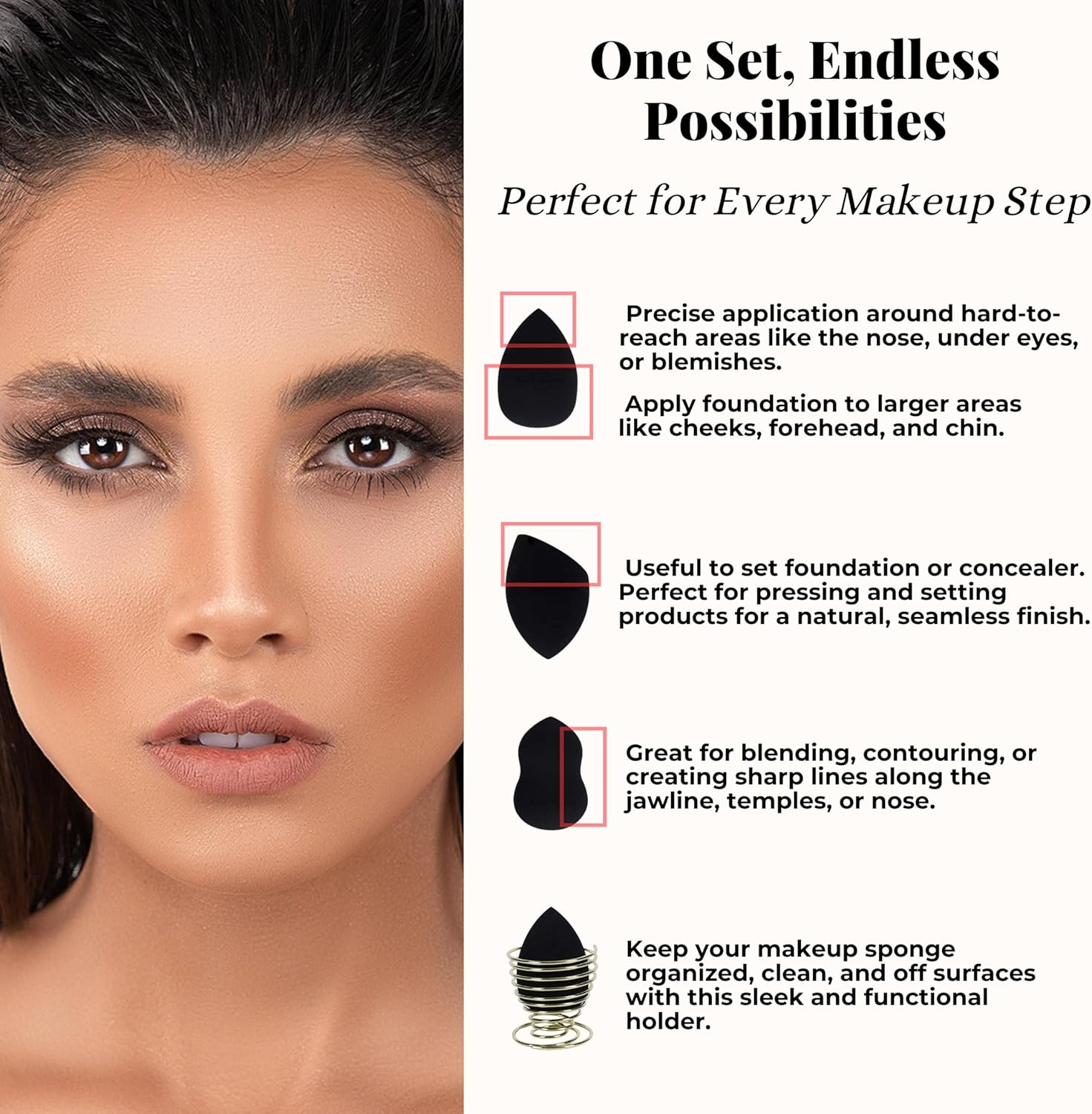 ImpressionZ Premium Makeup Sponge Set – 3 Pcs Blending Sponges with 1 Holder, Multi-Shape Cosmetic Applicators for Foundation, Liquid, Cream, and Powder – Vegan & Cruelty-Free, Smooth Application