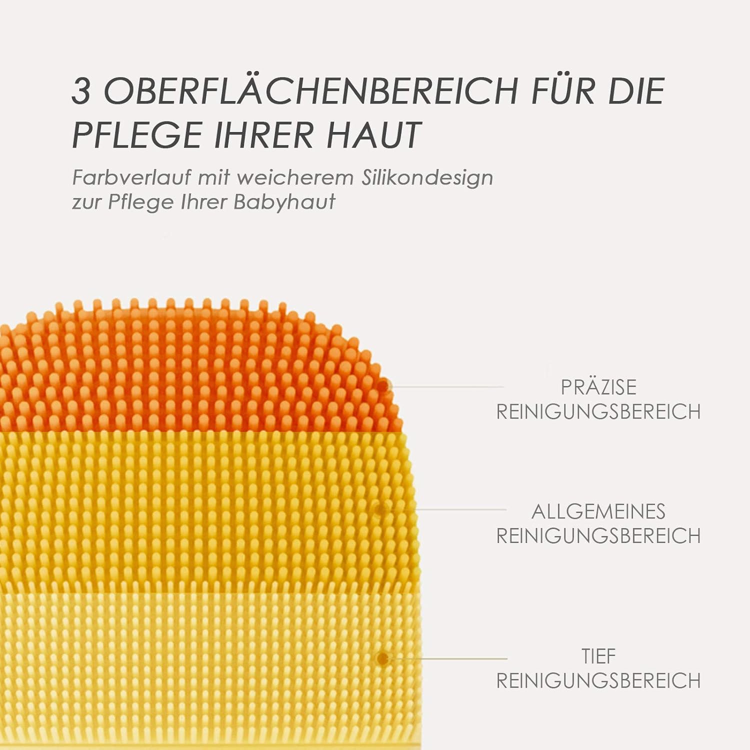 Dit is een siliconen gezichtsreiniger. Het apparaat is waterdicht. De borstels zijn er in drie niveaus, van dik tot dun, zodat ze perfect op elk deel van het gezicht passen. De siliconen zijn 4,5 mm dik, wat zorgt voor een betere haptiek en valbestendigheid. De draagbare box is gemakkelijk mee te nemen en gemakkelijk schoon te maken.