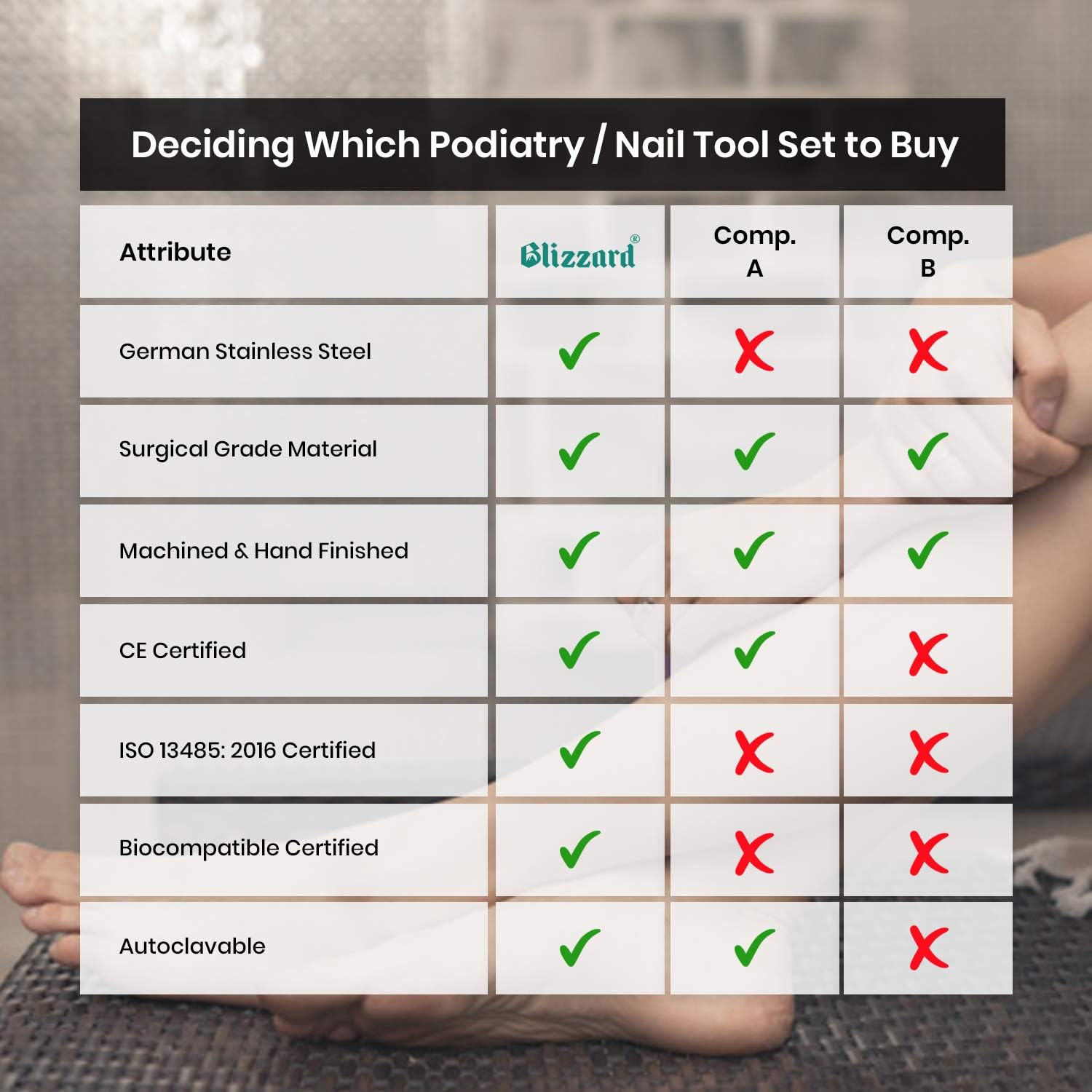 Tevredenheidsgarantie: Onze pedicureset uit onze Kenmerkende Reeks wordt ondersteund door 30 dagen geldteruggarantie. Geleverde verpakking is inclusief hoezen van duurzaam plastic.