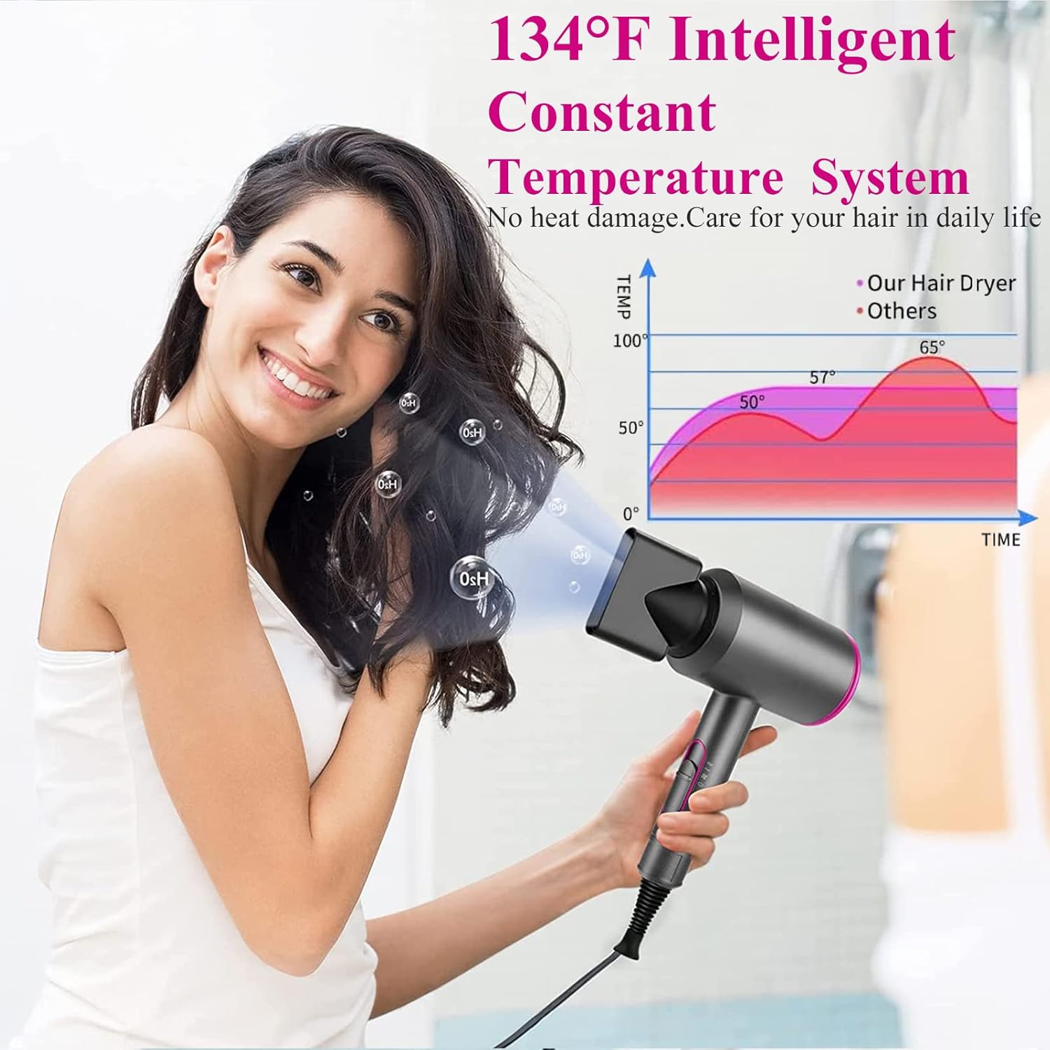 【Anti-kroes & superieure ionenverzorging】- Constante temperatuur, geen verbranding van het haar. Deze haardroger-ionen geven ook haarverzorgingsionen af, zorgt voor een ongeëvenaarde glans en vermindert kroezen en droogheid.