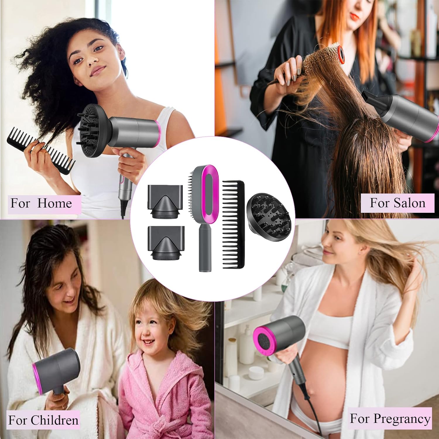 Haardroger met 5 opzetstukken: 2 x 7 cm stylingsproeiers voor een nauwkeurige styling en gerichte luchtstroom voor snel drogen, 1 x diffuser, 1 x 3D-luchtkussen-massagekam, 1 x brede tinkige kam.