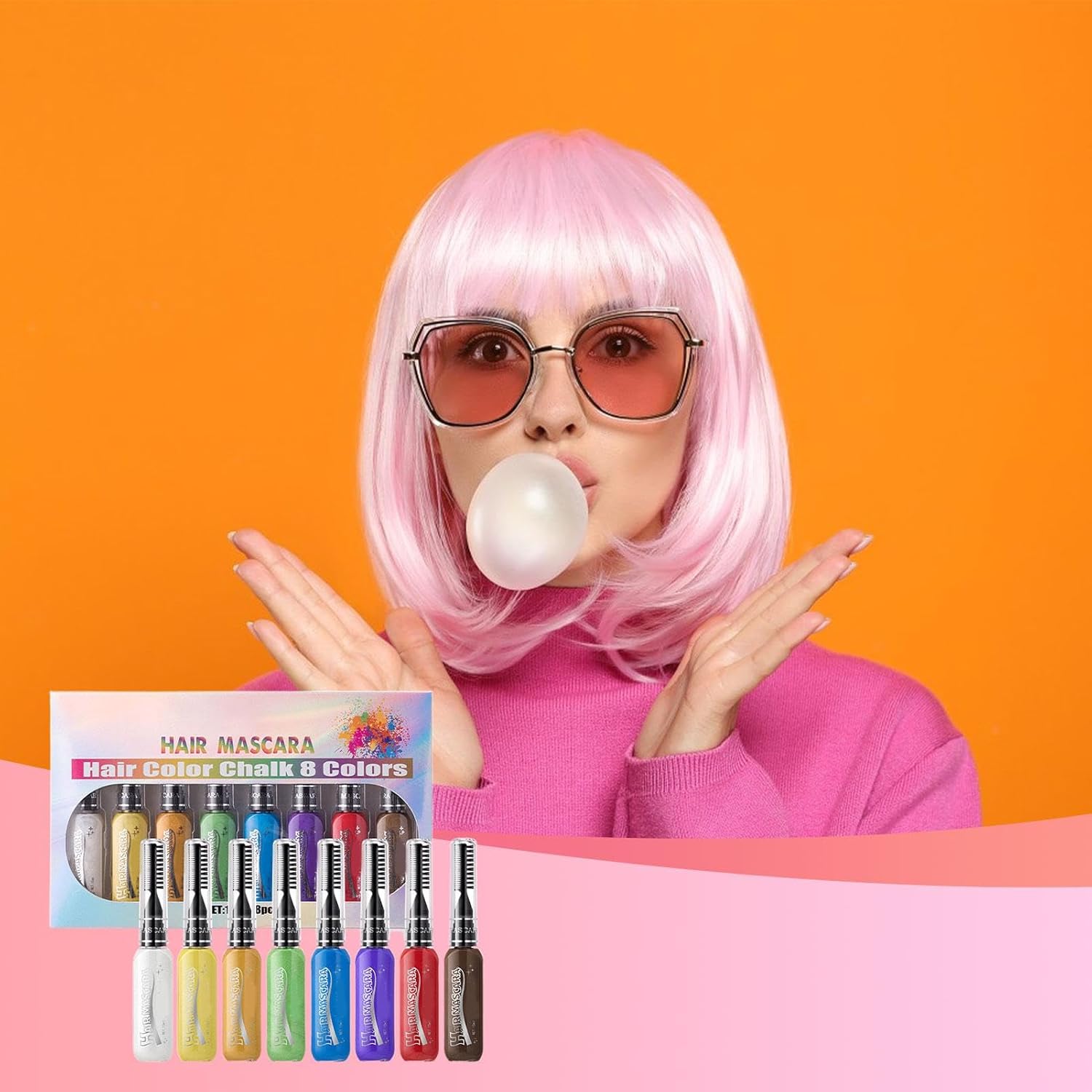 Verander je kapsel met de tijdelijke haarkamset van haarkrijt, bestaande uit 8 heldere en wasbare kleuren, waarmee je buitengewone zonnesteken en gedurfde ontwerpen kunt beleven. Perfect voor feestjes, festivals of voor creatieve zelfexpressie. Dit haarkrijt is ontworpen voor eenvoudig gebruik met een kam die perfecte precisie garandeert. De niet-giftige en in water oplosbare formule is zacht voor haar en huid, waardoor hij geschikt is voor alle leeftijden en haartypes. Of je nu een vleugje kleur toevoegt voor een speciale gelegenheid of een nieuwe look probeert, deze tijdelijke haarkleuren kunnen gemakkelijk met shampoo worden uitgewassen en zorgen zo voor vrijblijvend plezier.