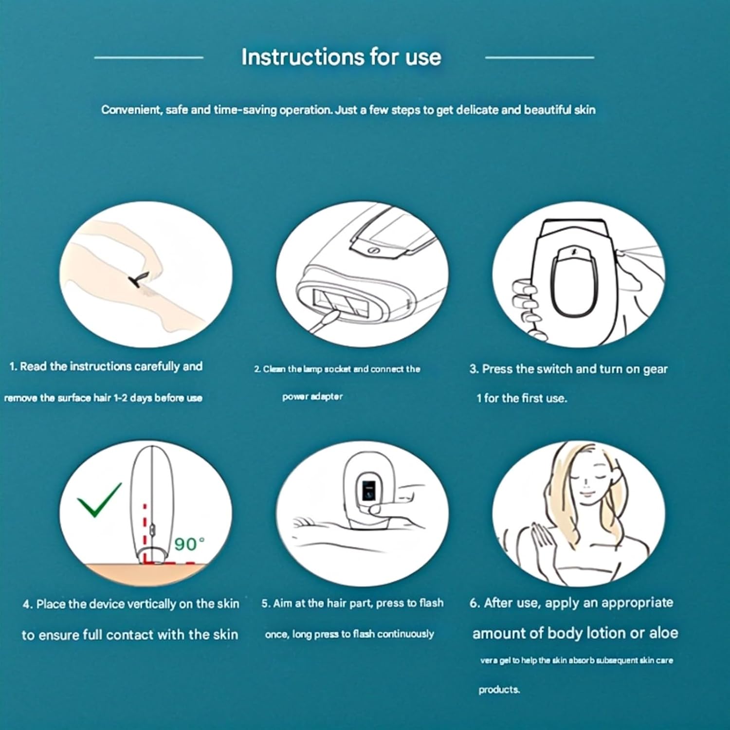 Nieuw geüpgraded 990.000 flitsen, 360° no-dead-angle design, 10 minuten om pijnloze ontharing voor het hele lichaam te voltooien! Het is niet nodig om een afspraak te maken met een schoonheidssalon, armen, benen, oksels, bikinilijn kan met één klik worden gedaan, wat tijd en moeite bespaart. In 10 minuten kun je een volledige lichaamsvernieuwing bereiken, afscheid nemen van ruwheid, een zijdeachtige huid omarmen, vertrouwen in badpak zonder schaamte!