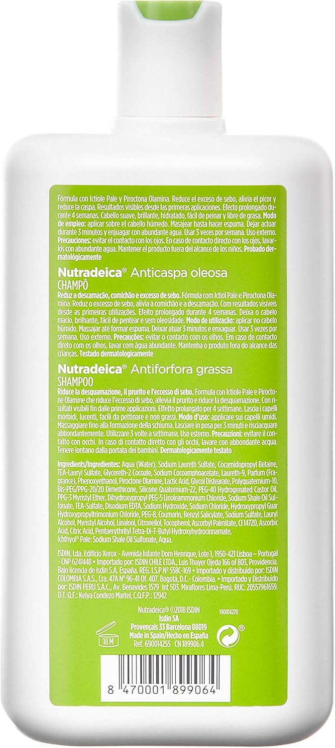 ISDIN Nutradeica anti-roos shampoo (400 ml) | vermindert overtollig sebum | verlicht jeuk en vermindert roos