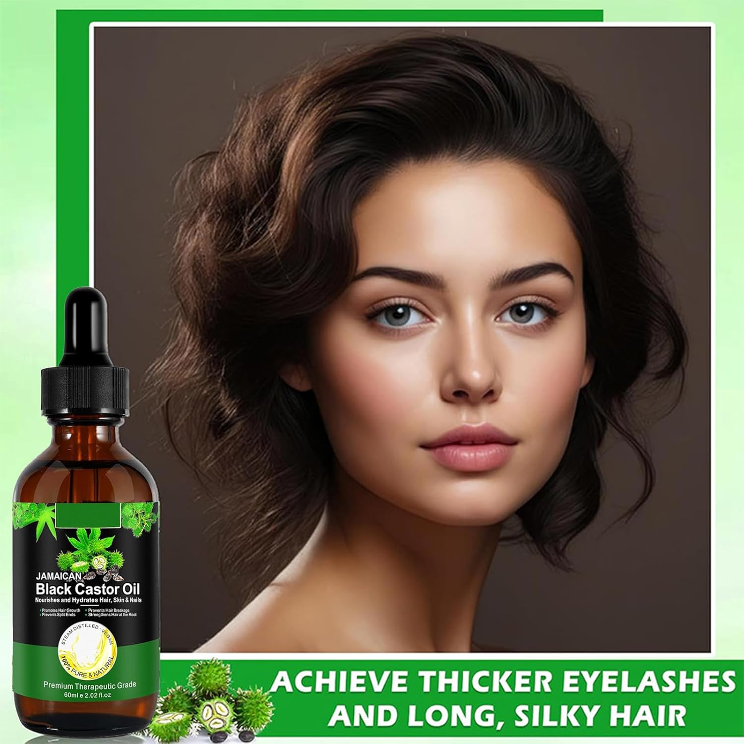 Jamaican Black Castor Oil Haarolie, puur & natuurlijk, hydraterende haarverzorgingsolie voor haargroei, versterking en glans, hoofdhuidverzorging en reparatie van gespleten haarpunten, 60 ml