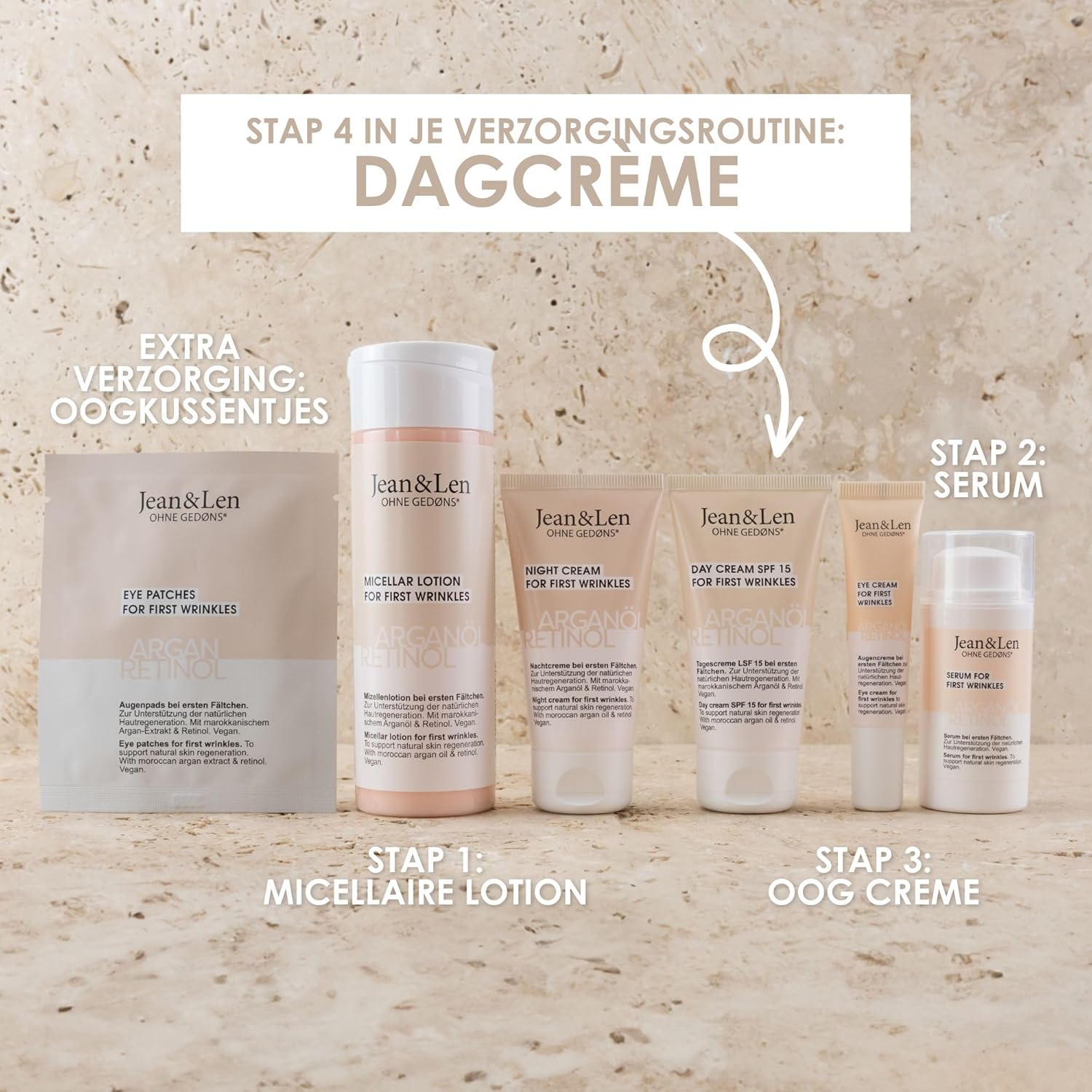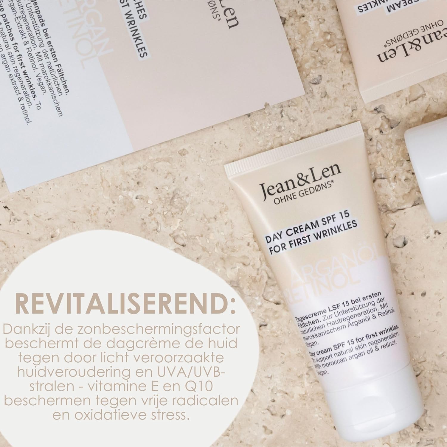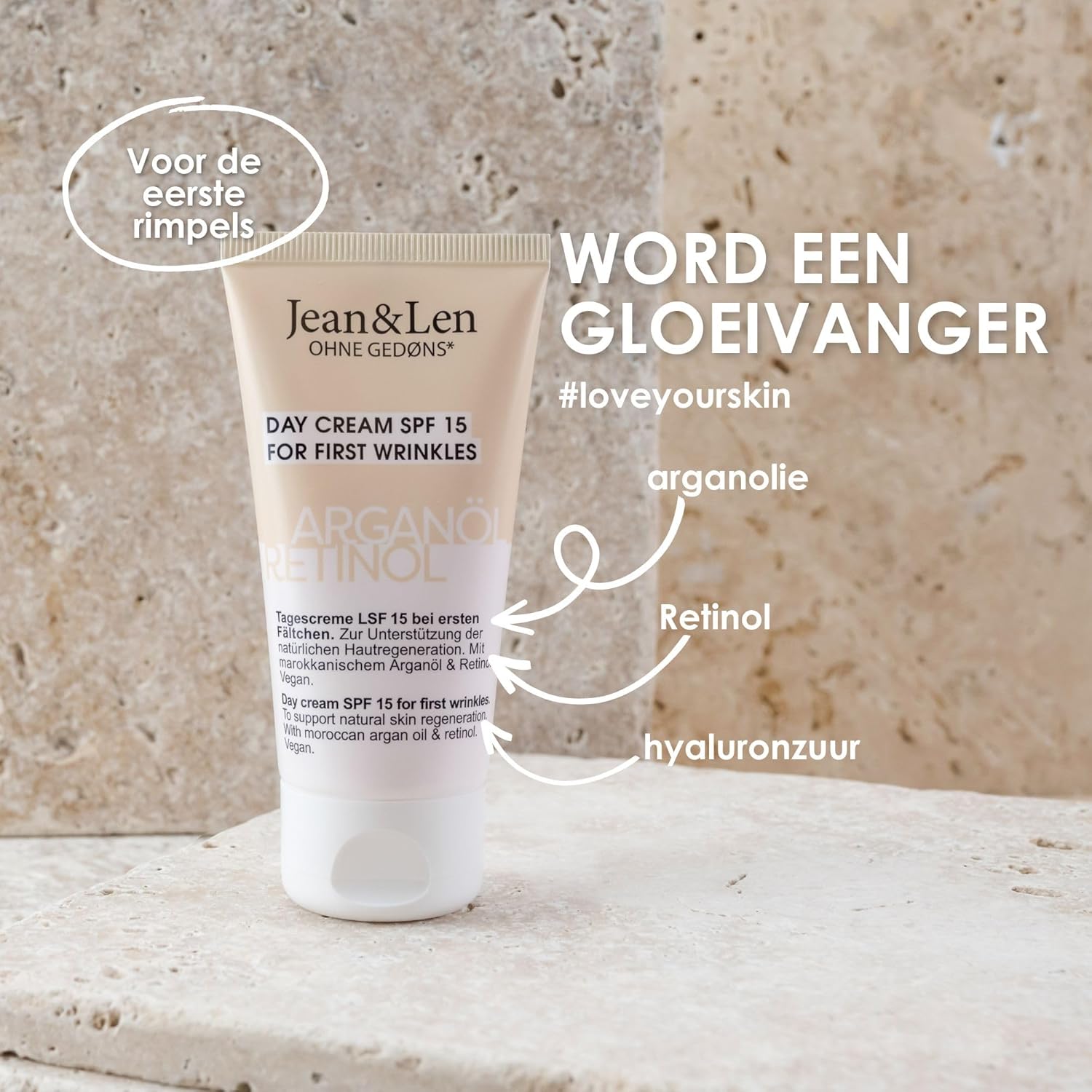 Jean & Len Dagcrème SPF15, arganolie & retinol, voor eerste rimpels, ondersteunt huidregeneratie, met UV-bescherming, zonder parabenen & siliconen, vegan, 50 ml