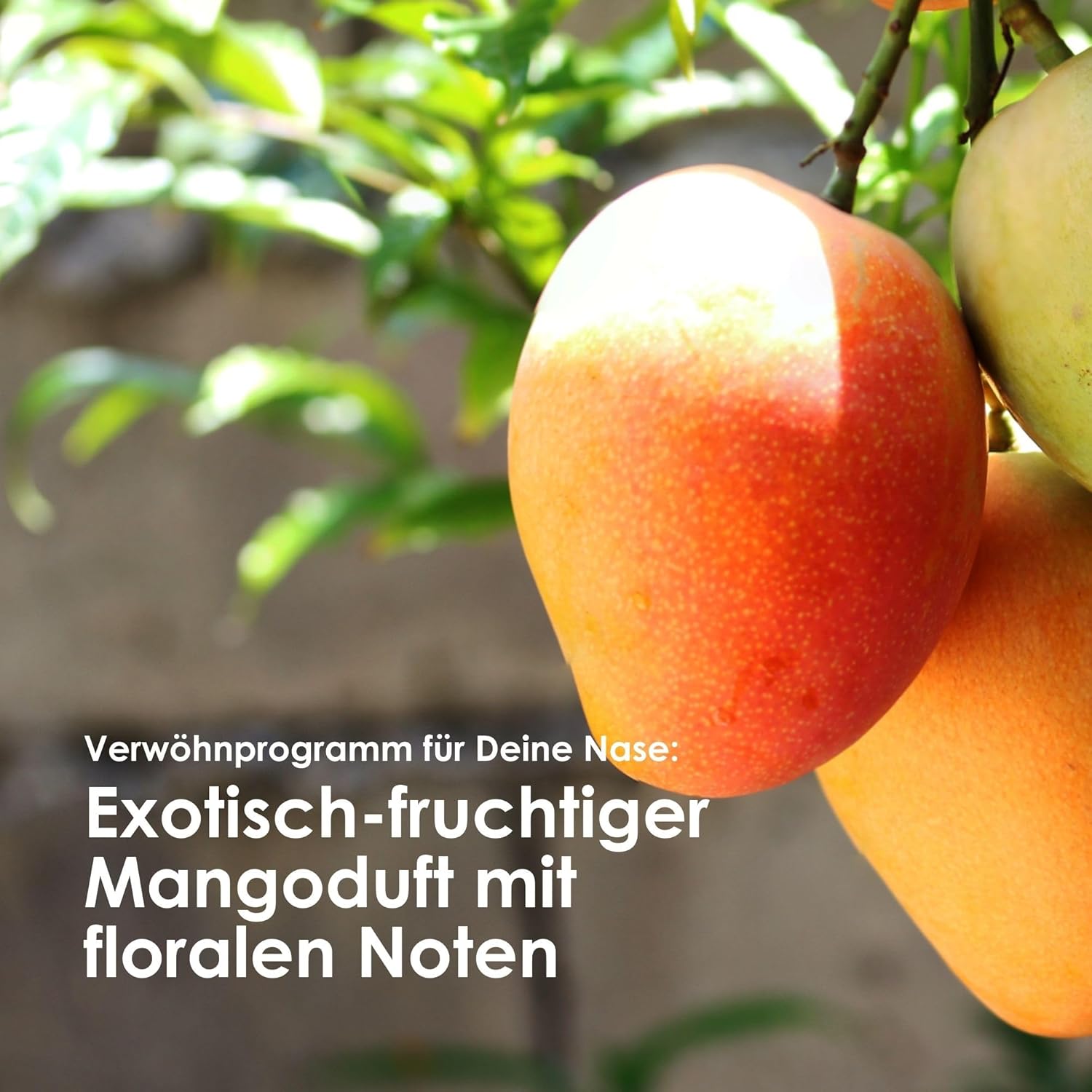De veganistische krulshampoo helpt gespleten haarpunten te verminderen en de elasticiteit van het haar te verbeteren – de exotische mango-geur zorgt voor een fruitige douche-ervaring