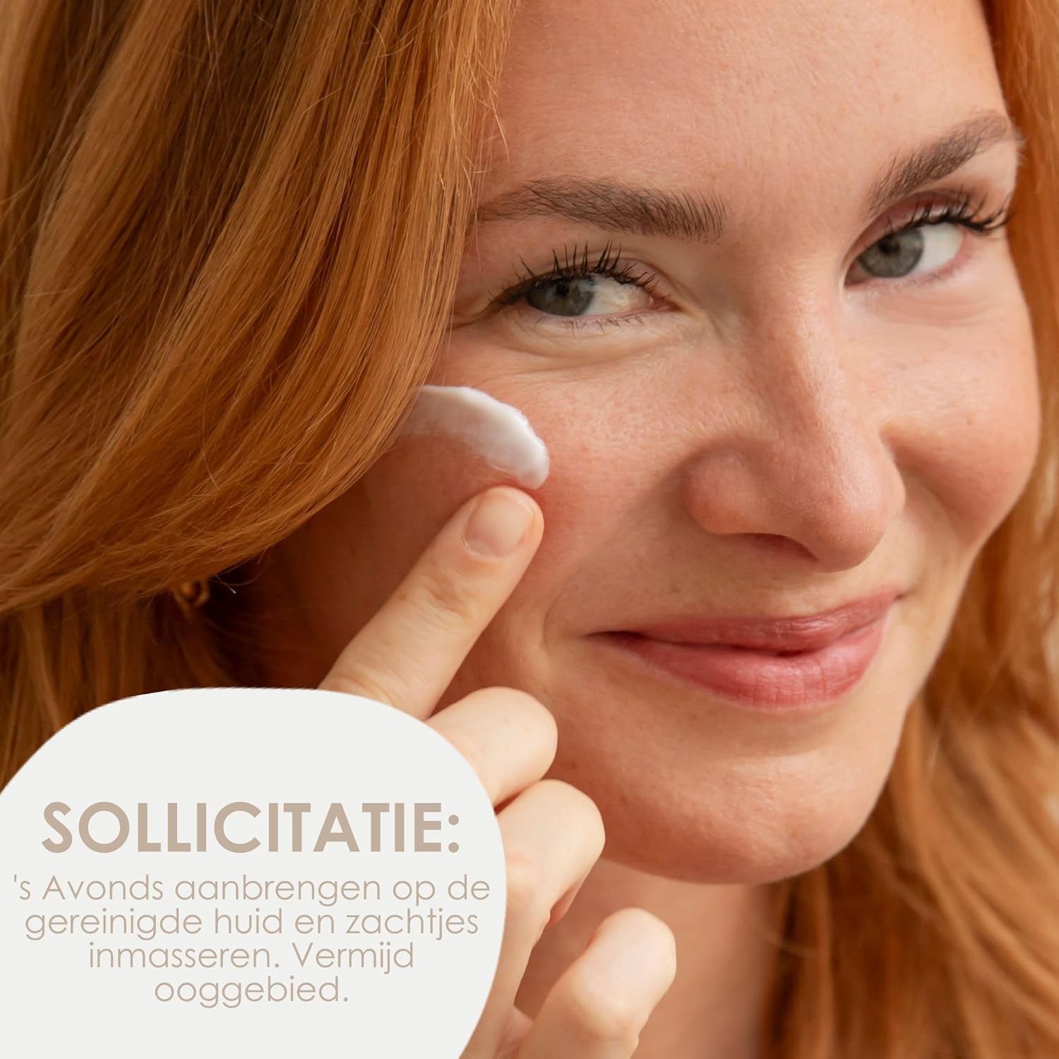 ‘s Avonds aanbrengen op de gereinigde huid en zachtjes inmasseren. Vermijd het gebied rond de ogen.